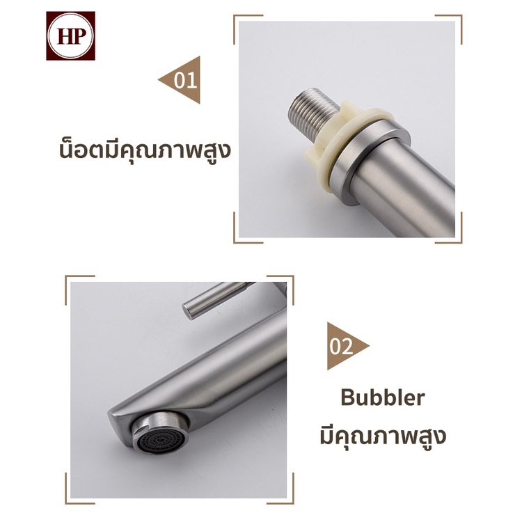 🔥H Power🔥 ก๊อกน้ำอ่างล้างหน้า มีคุณภาพดี ราคาถูก ออกแบบอย่างประณีต สแตนเลส 304 ฟรี!! เทปพ