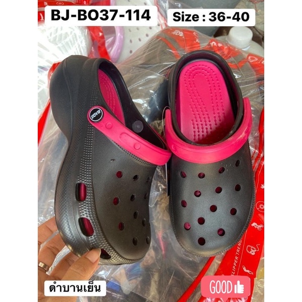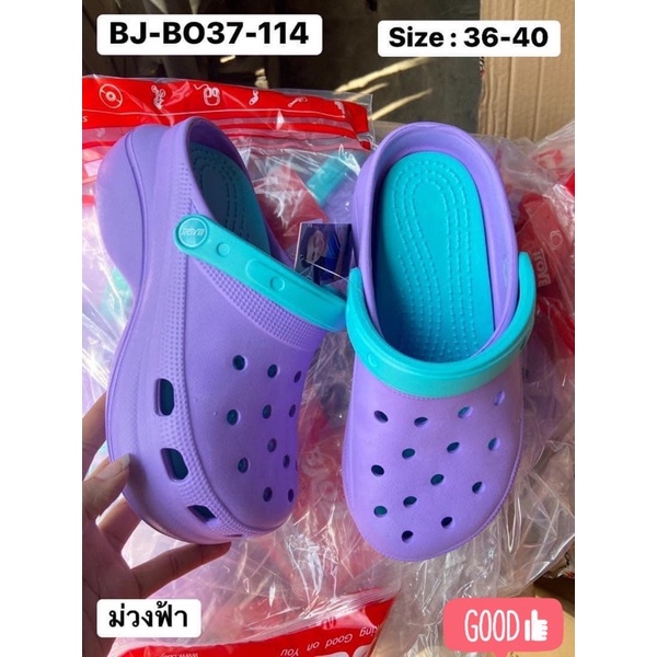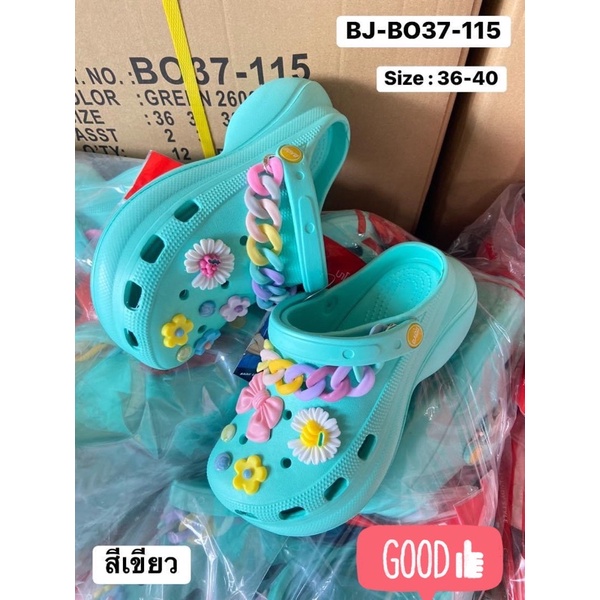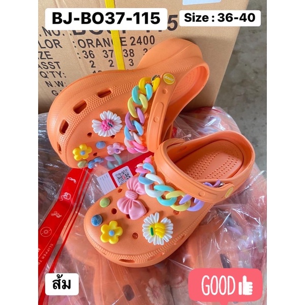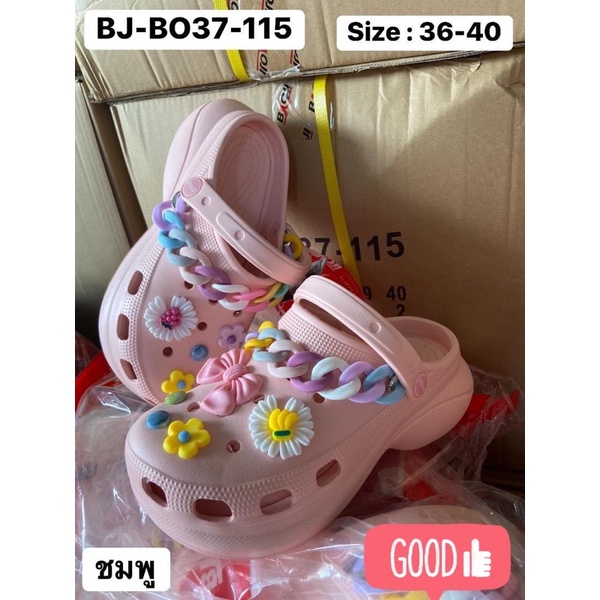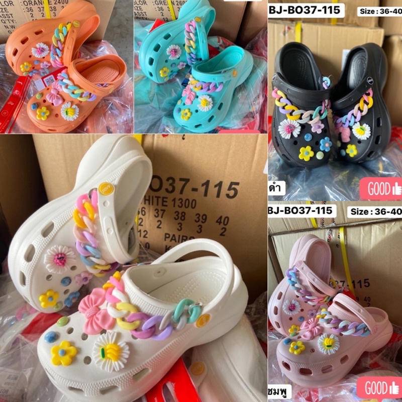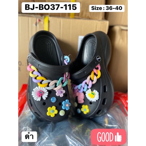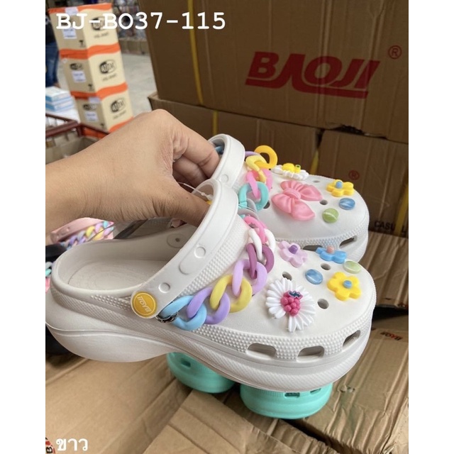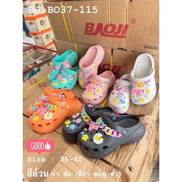 🔥พร้อมส่ง🔥รองเท้า BAOJI แท้💯% รองเท้าหัวโตลายดอกไม้พร้อมโซ่ พื้นสูง 6 ซม. พื้นนุ่ม ใส่สบายมาก ๆ รุ่น 115