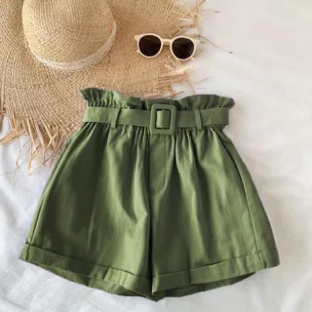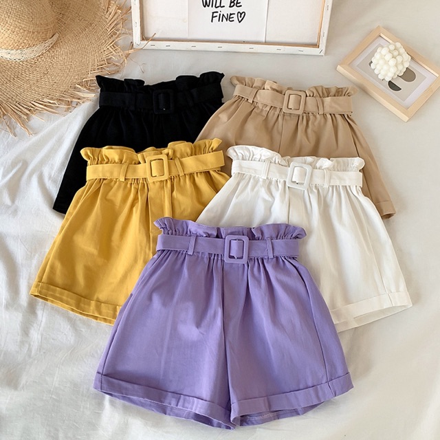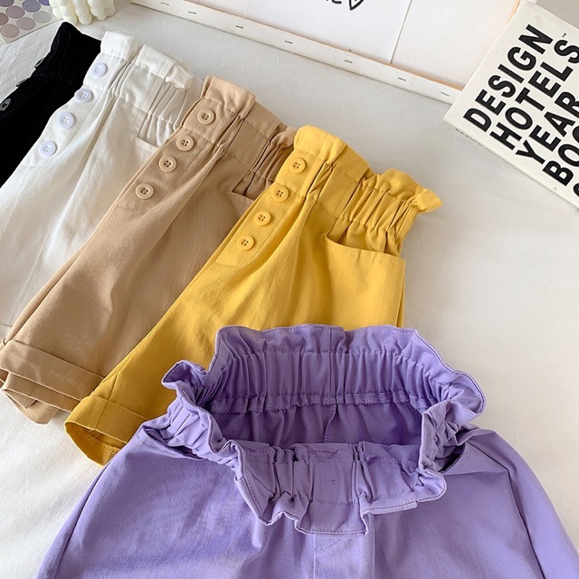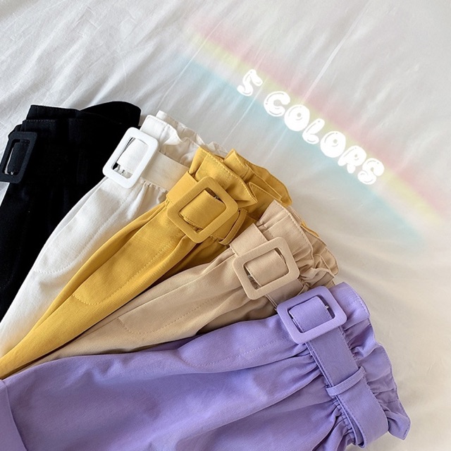 🔥พร้อมส่ง🔥กางเกงขาสั้นเอวจีบ กางเกงทรงบาบี้ สีพาสเทล กางเกงบาร์บี้ทรงสูง