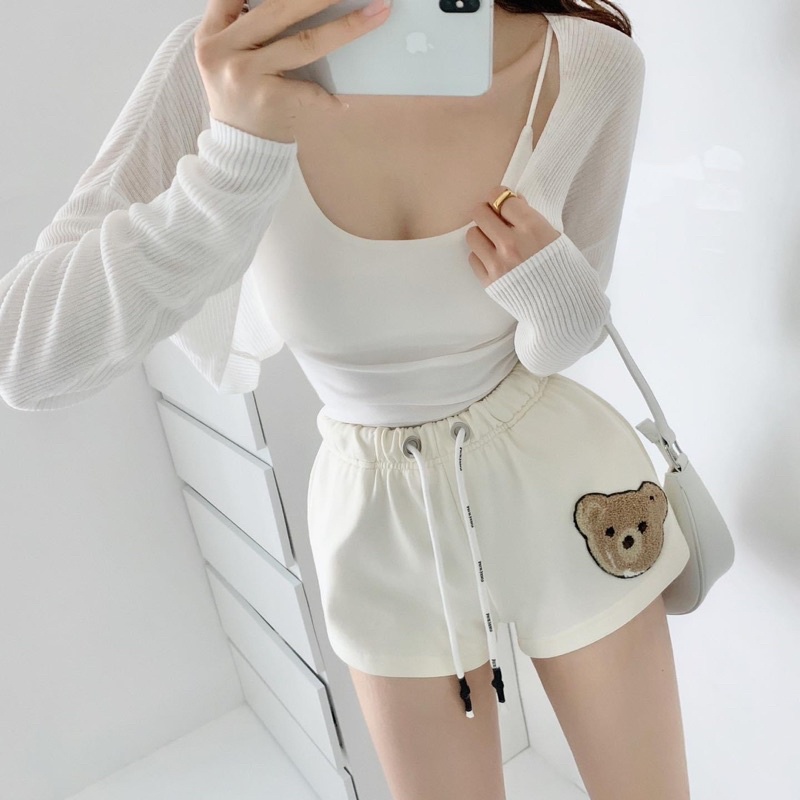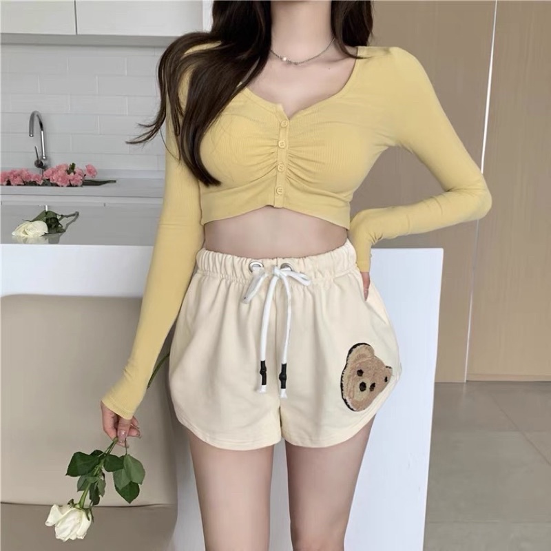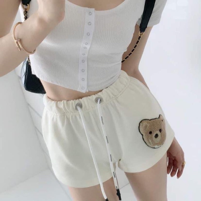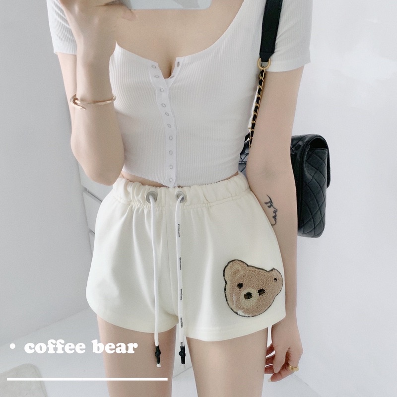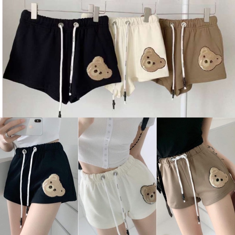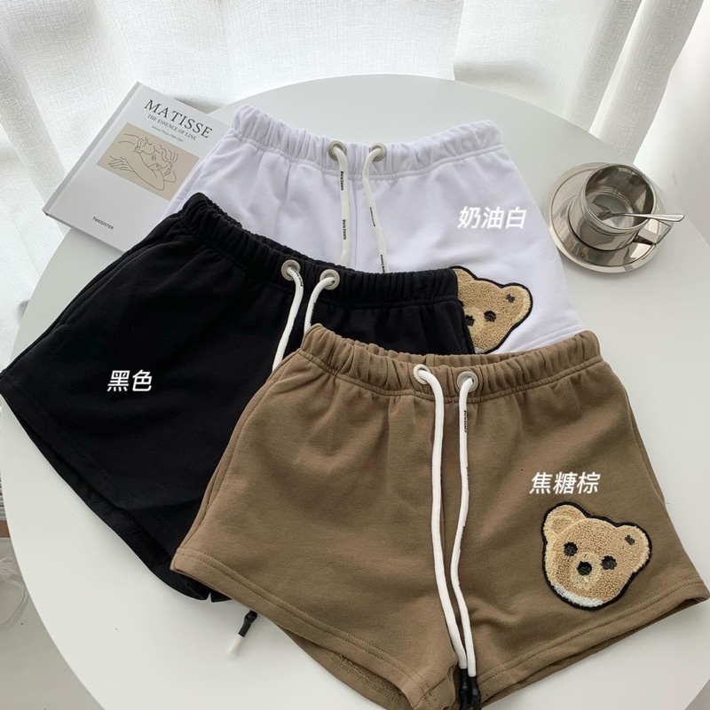 🔥พร้อมส่ง🔥กางเกงขาสั้น กางเกงขาสั้นปักน้องหมี สีพื้น ลายน้องหมีน่ารักๆ
