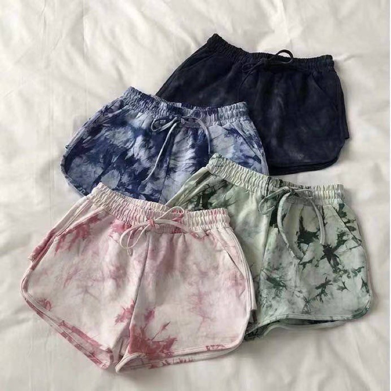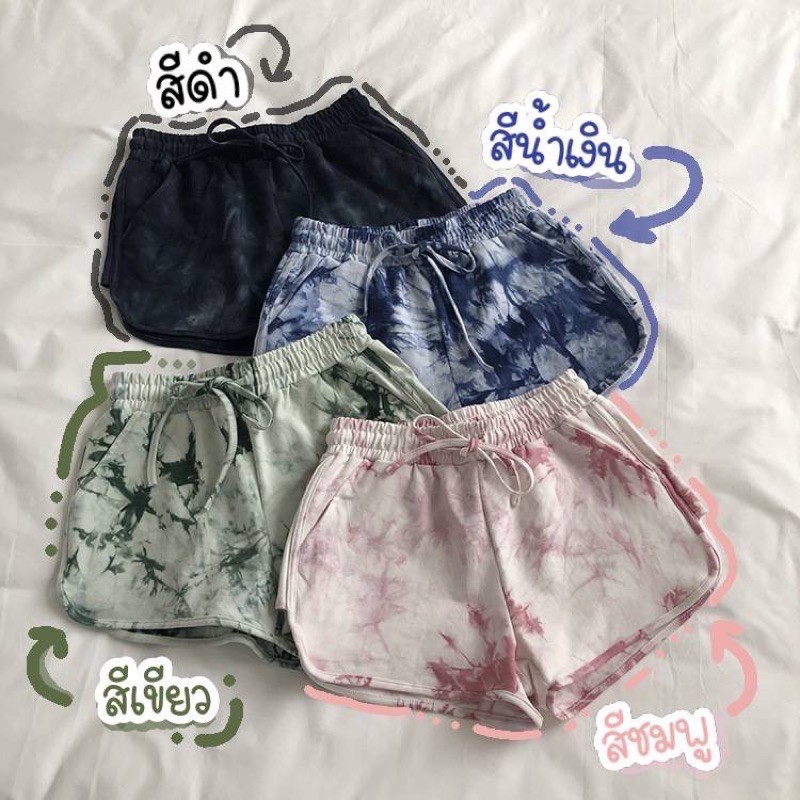 🔥พร้อมส่ง🔥กางเกงขาสั้นเอวยางยืด ลายมัดย้อม กางเกงมัดย้อมสีพาสเทลน่ารักมากเลยจ้า