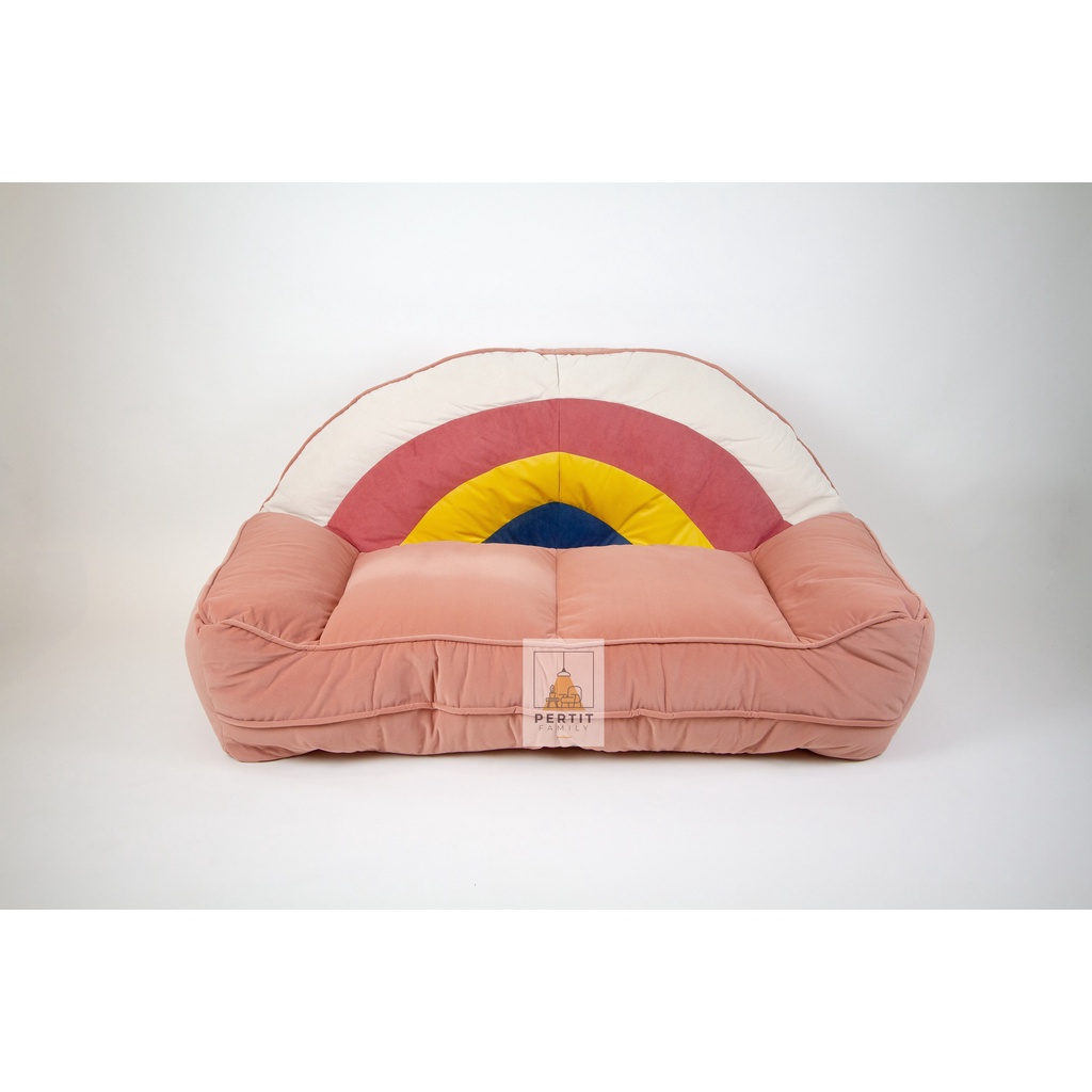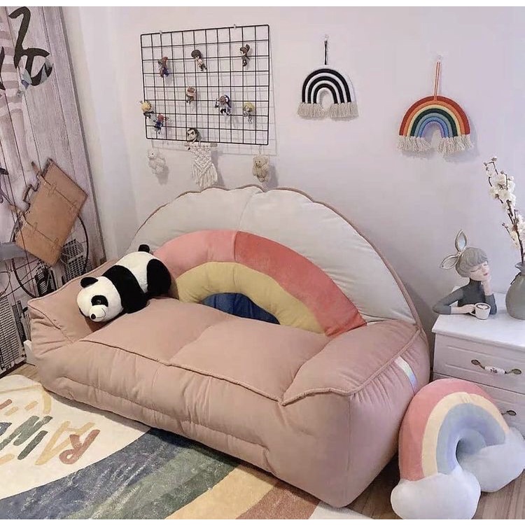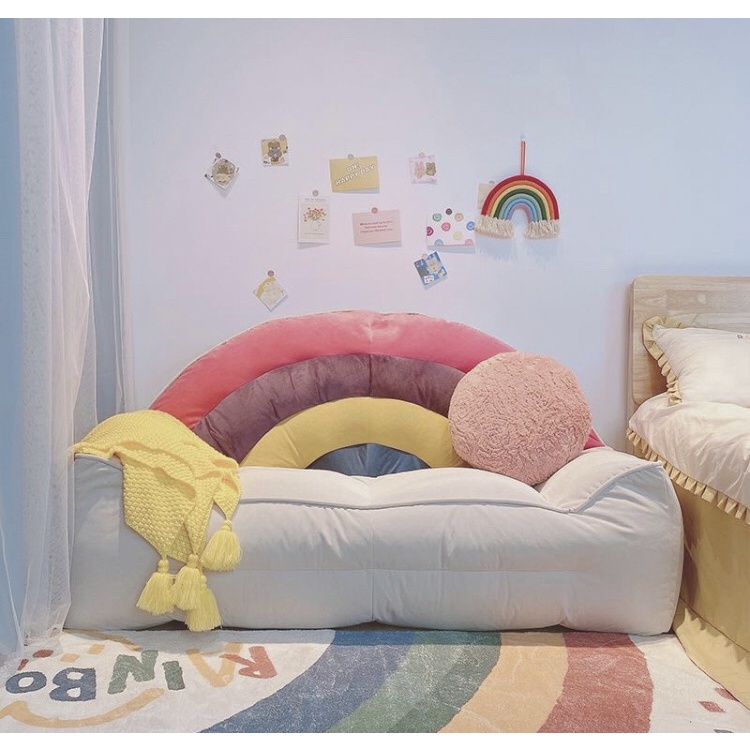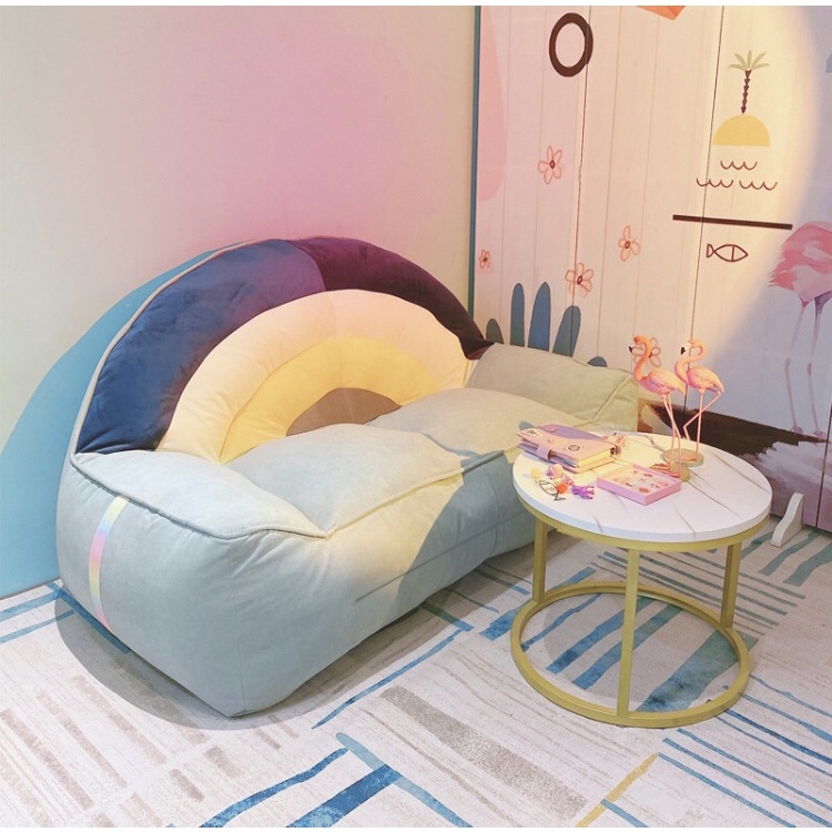 🌈Rainbow Sofa โซฟาสายรุ้ง เนื้อผ้ากำมะหยี โซฟา พร้อมนั่ง พร้อมเม็ดโฟมขนาดเล็ก3-5 mm