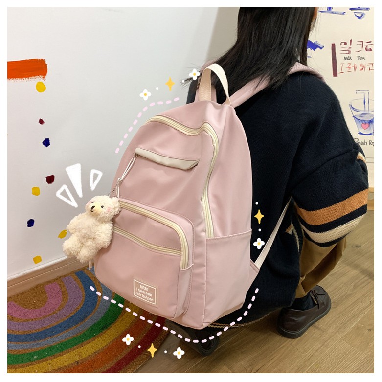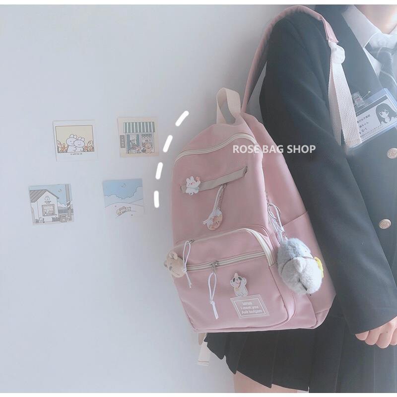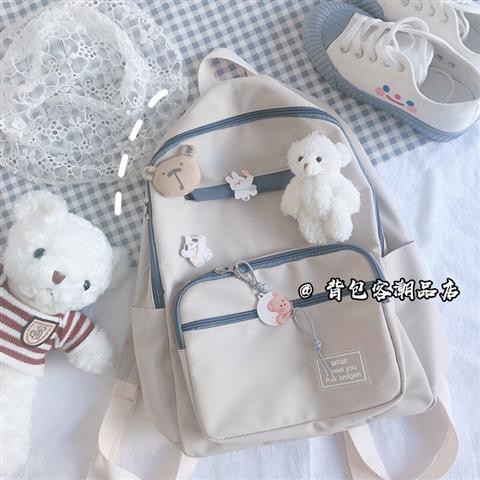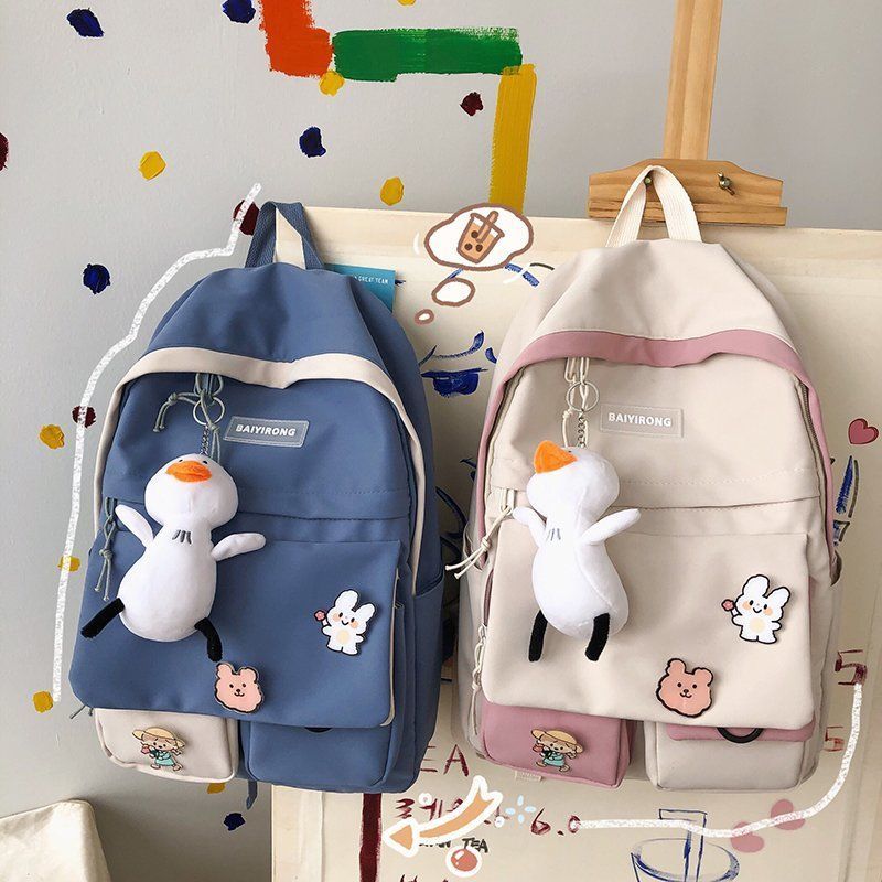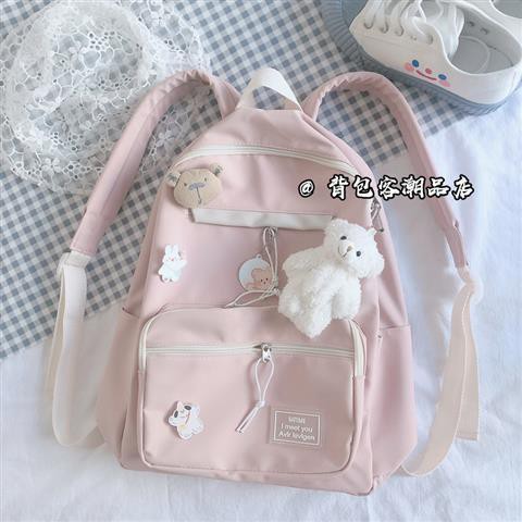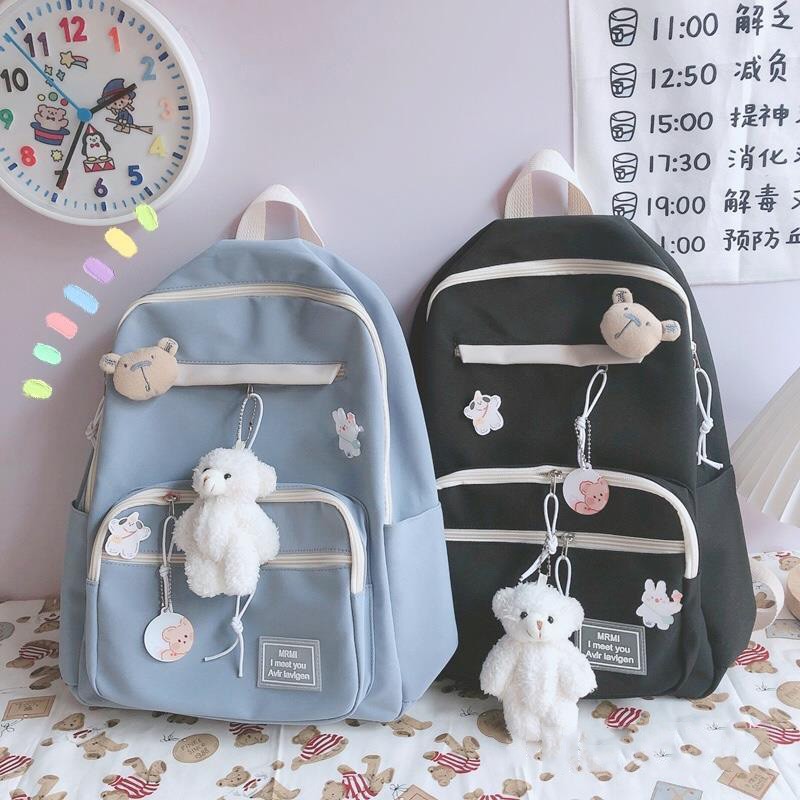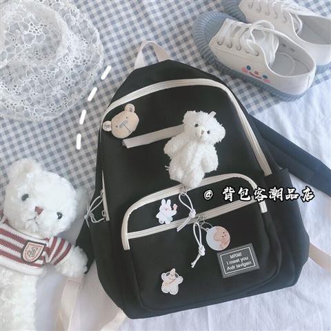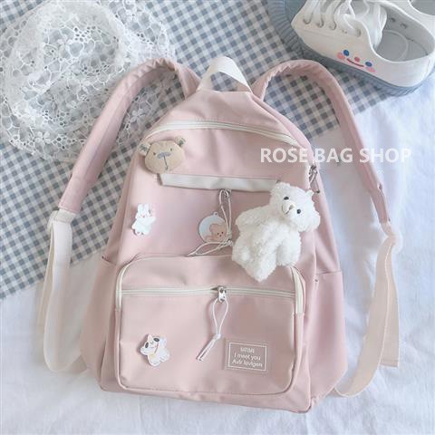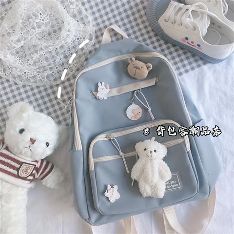 กระเป๋าเป้สะพายหลัง ความจุขนาดใหญ่ พร้อมจี้ตุ๊กตาและเข็มกลัดน่ารัก