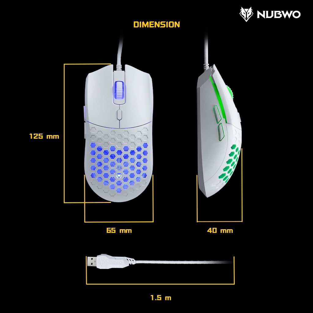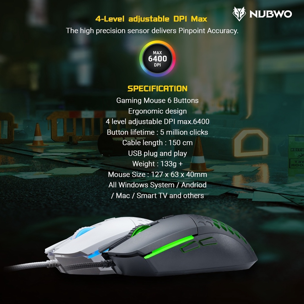 Nubwo เมาส์เกมมิ่ง มีไฟ RGB เสียงเงียบ ปรับ DPI ได้ มีให้เลือก 2 สีดำ/ขาว ใช้งานง่าย รุ่น NM-94M