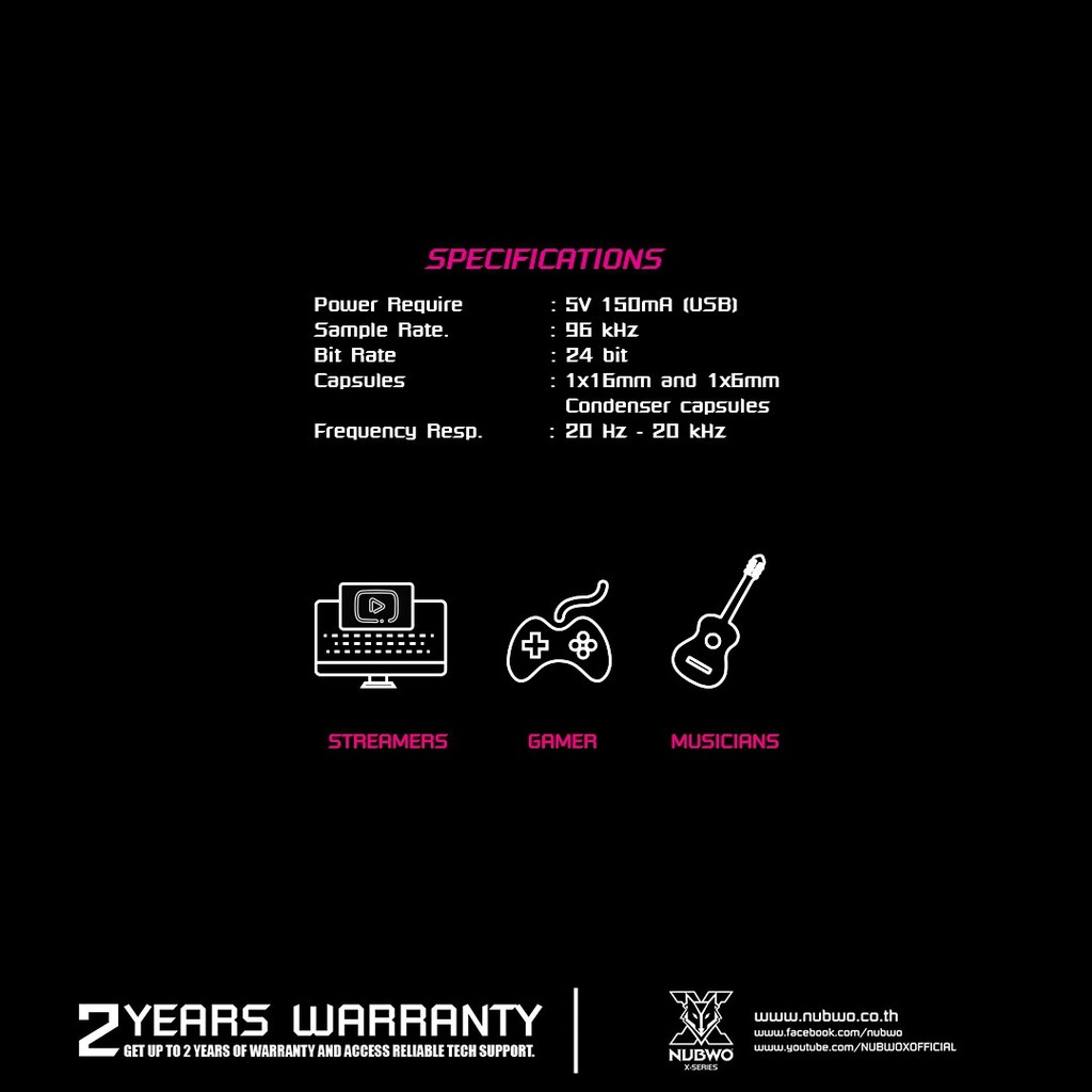 NUBWO SEEKER KIT 96KHz MICROPHONE ไมโครโฟน แถมชุดขาตั้งไม ค์ เสียงดี คมชัด รุ่น X400 รับประกัน 2 ปี