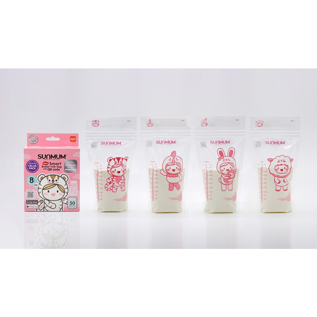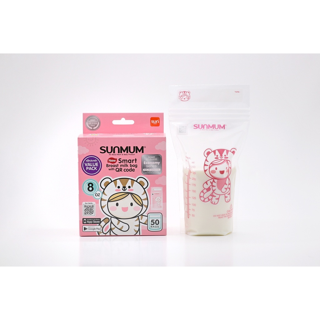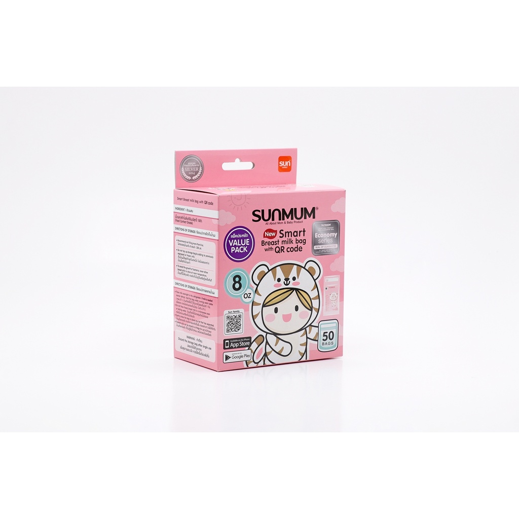 Sunmum ถุงเก็บน้ำนมแม่ ซันมัม ทานตะวัน ขนาด 8 oz. แพค 50 ใบ 1 กล่อง - Breast Milk Storage Bags(New) Pk.50 Bags x 1 Boxes