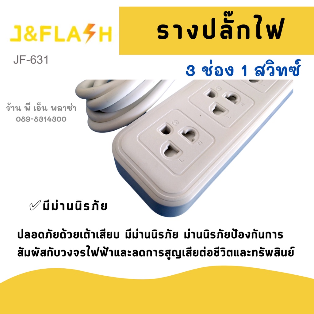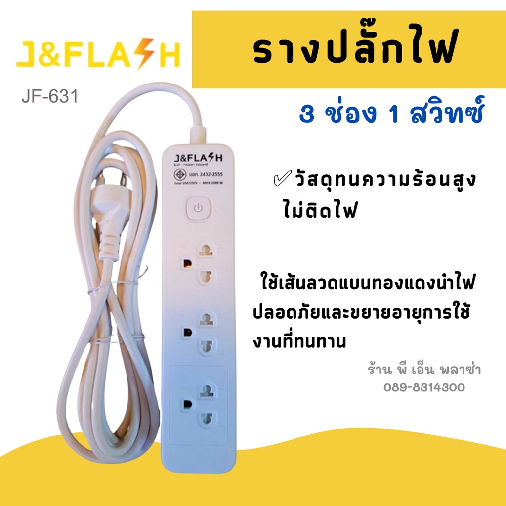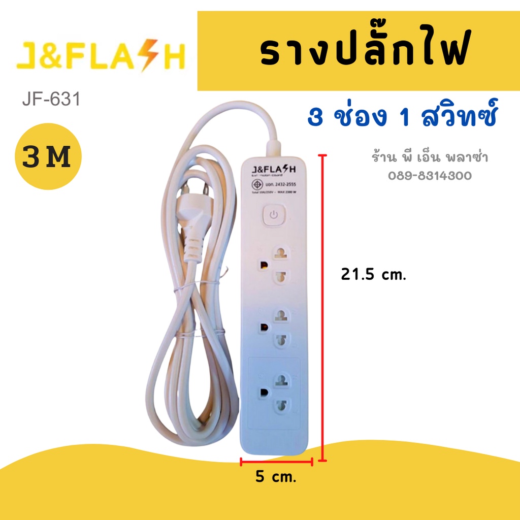 [ใช้โค้ดYES918SWลด25.-] ปลั๊กราง สุดยอดปลั๊กไฟ J&FLASH รุ่น JF-631/3M/5M ปลั๊กไฟ 3ช่อง1สวิตช์ สายไฟ 3M/5M