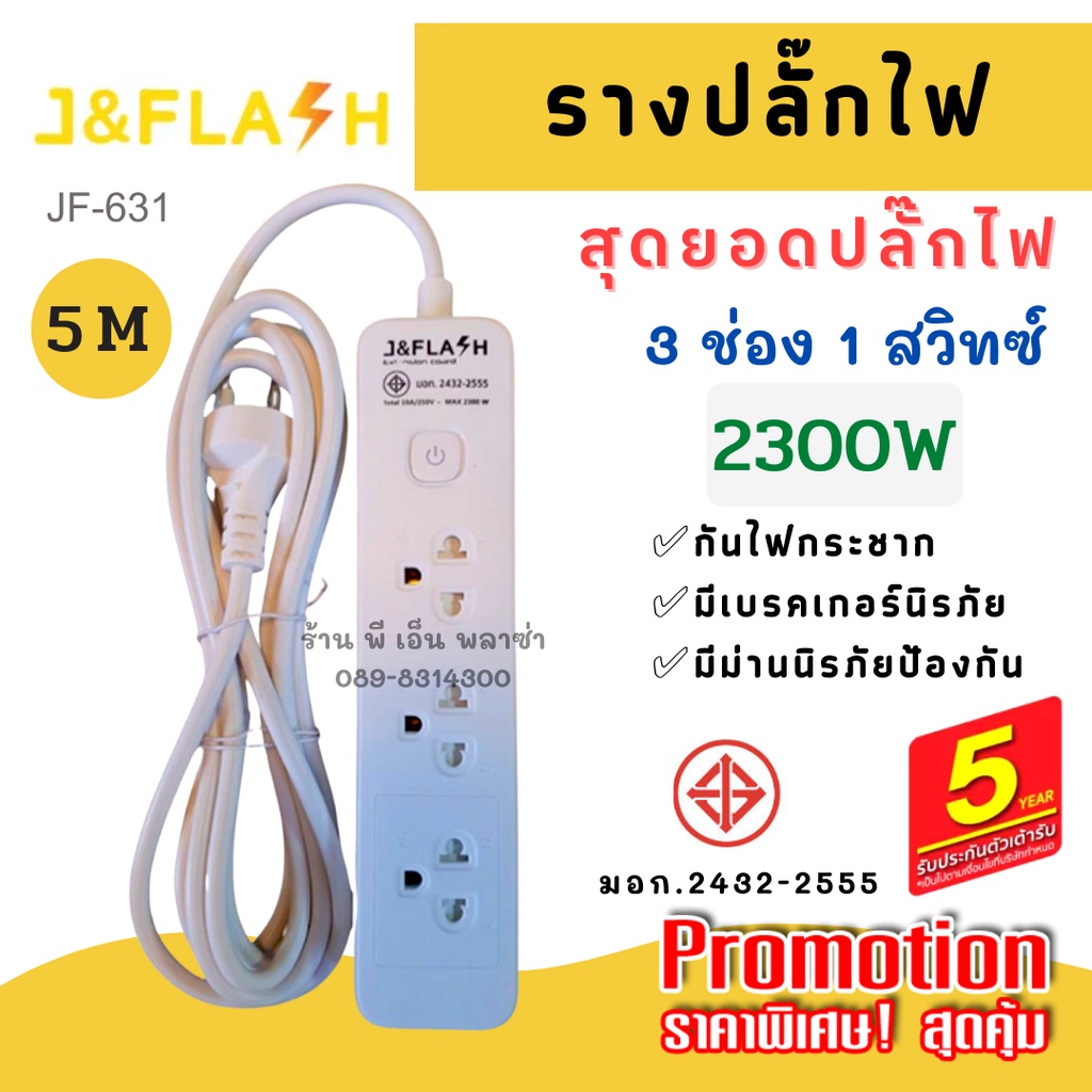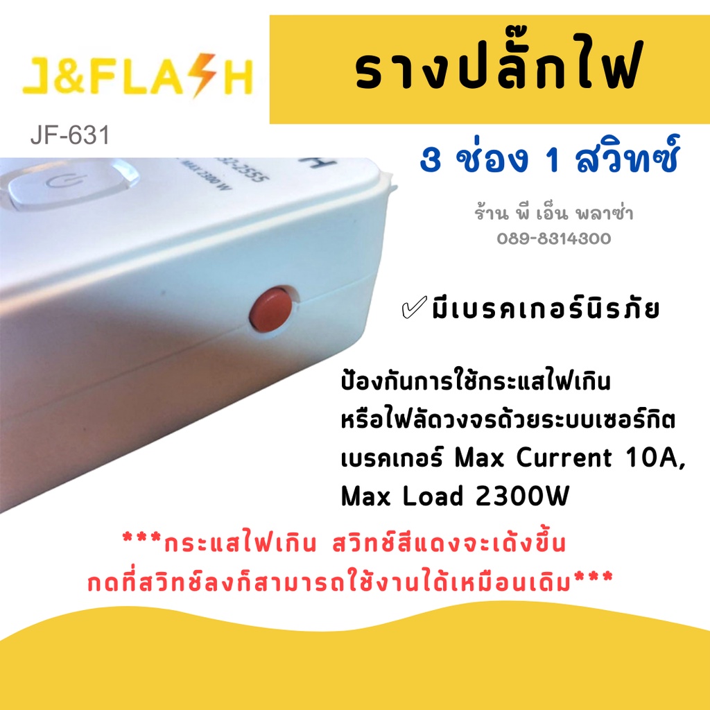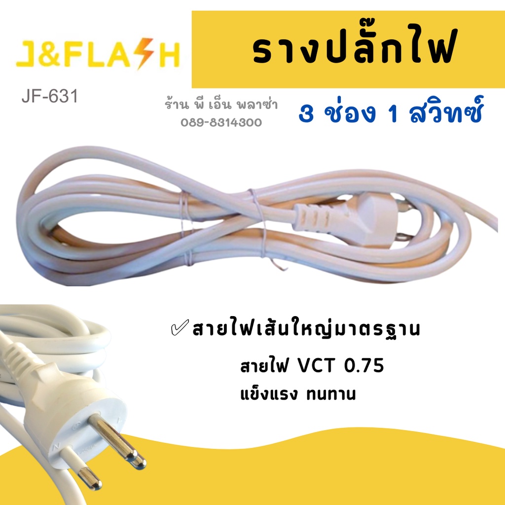 [ใช้โค้ดYES918SWลด25.-] ปลั๊กราง สุดยอดปลั๊กไฟ J&FLASH รุ่น JF-631/3M/5M ปลั๊กไฟ 3ช่อง1สวิตช์ สายไฟ 3M/5M