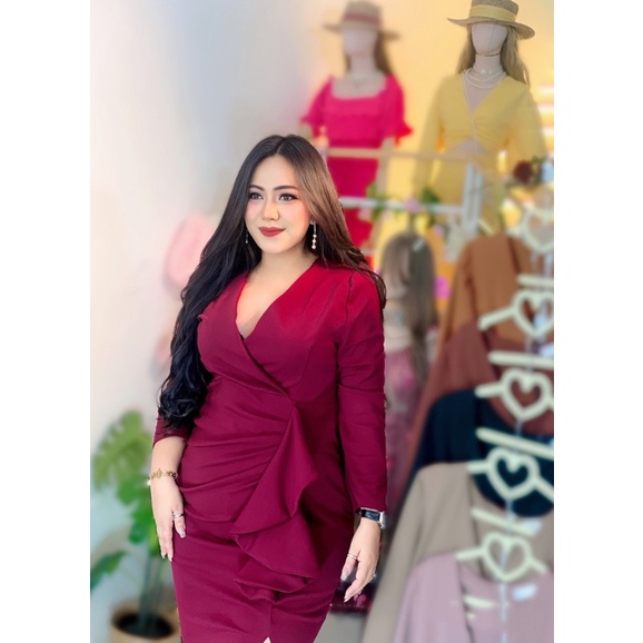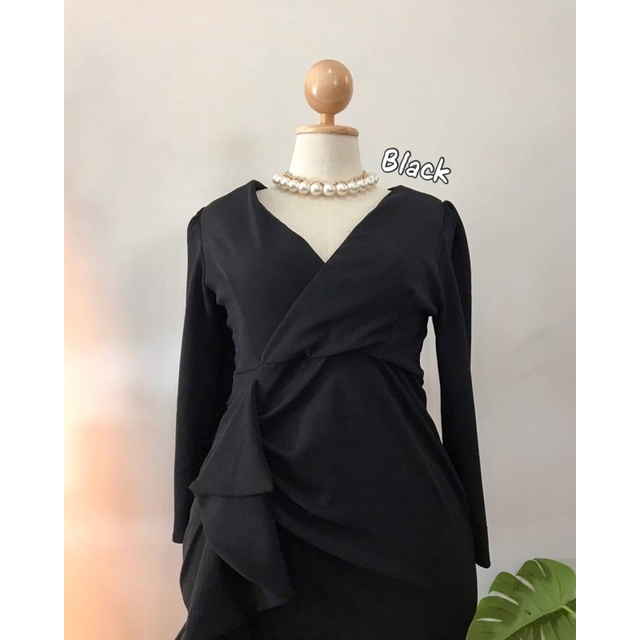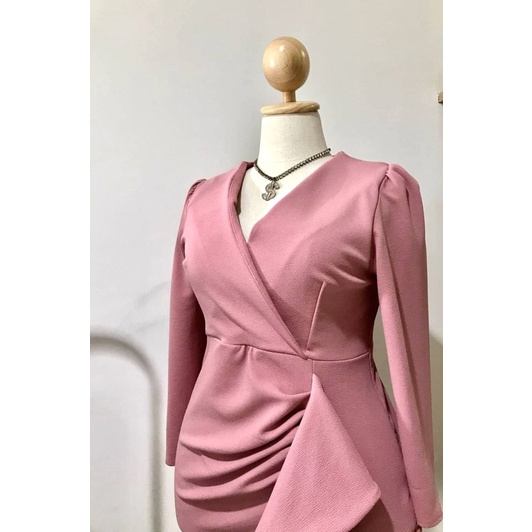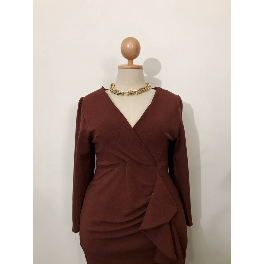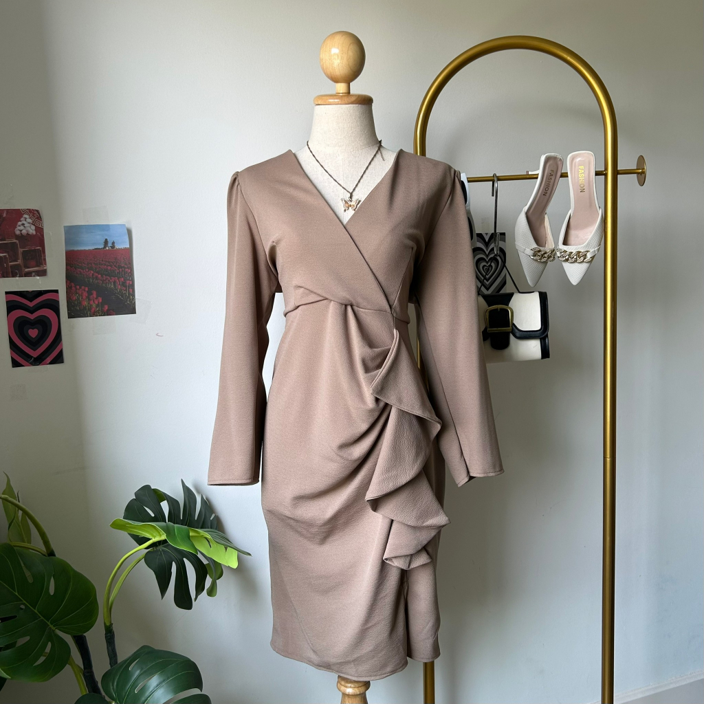 100KG PLUS SIZE เดรสสาวอวบไปออกงานดีเทลจีบเอวระบาย เดรสพรางหุ่นสาวอวบ อก38-46 รุ่น ด.มี้มาย(G51)