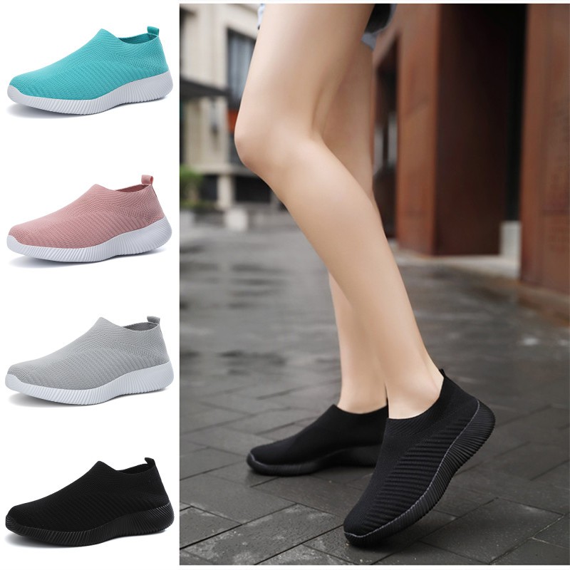 รองเท้ากีฬา รองเท้าผ้าใบ พื้นนิ่ม ยืดหยุ่น สวมใส่สบาย สีดํา แฟชั่นสําหรับผู้หญิง รองเท้าผ้าใบผู้หญิง