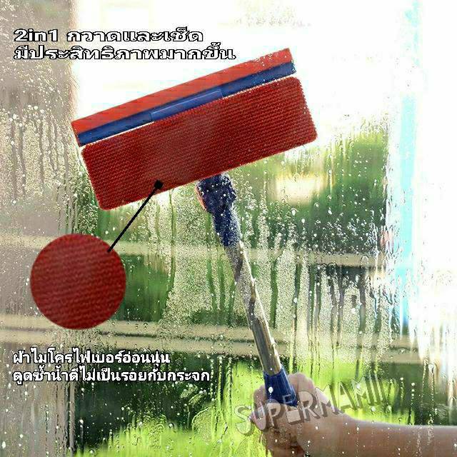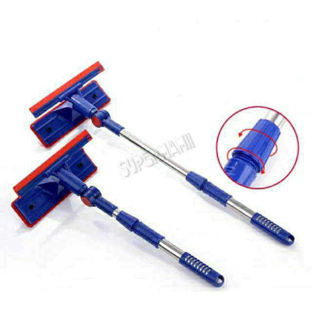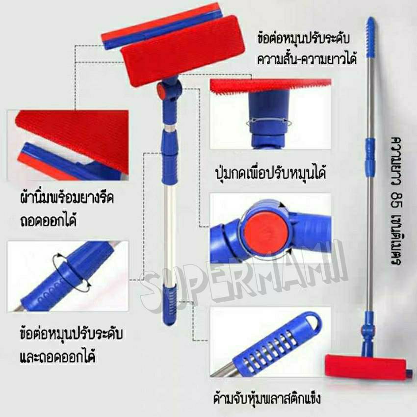 🙏NEW 3081 ไม้เช็ดกระจกฟองน้ำที่รีด ปรับ 2 ระดับสั้น-ยาว ยืดยาวสุด85cm. อะลูมิเนียม ด้ามน้ำเงิน