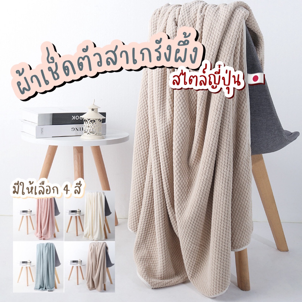 [พร้อมส่ง] ผ้าเช็ดตัว สาเกรังผึ้ง เนื้อนุ่มสบาย ซับน้ำได้ดี ขนาด 70x140 cm. คุณภาพสูง สีพาสเทล ผ้าเช็ดตัวขนาดใหญ่