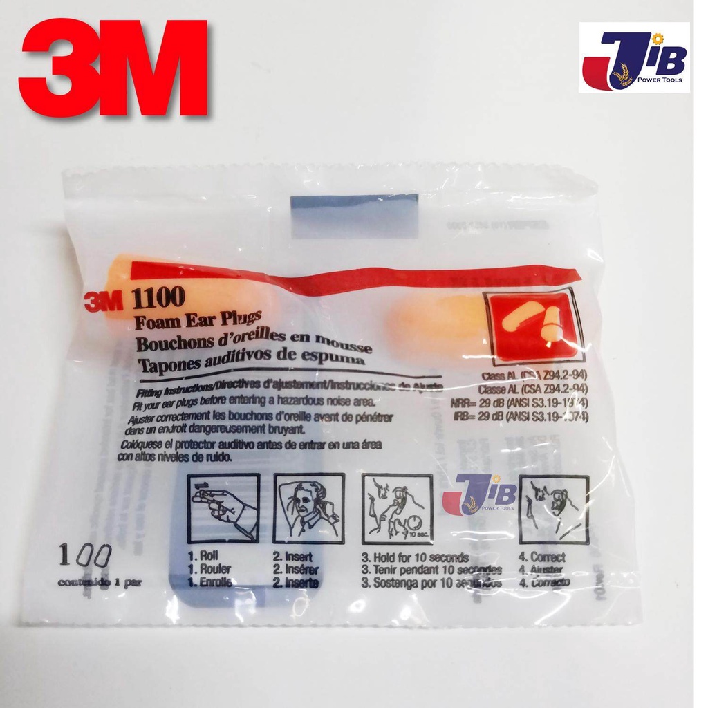 3M 1100 โฟมอุดหู ปลั๊กอุดหู ป้องกันเสียง ได้ถึง 29 เดซิเบล (ไม่มีสาย) - Foam Ear Plugs upto -29db