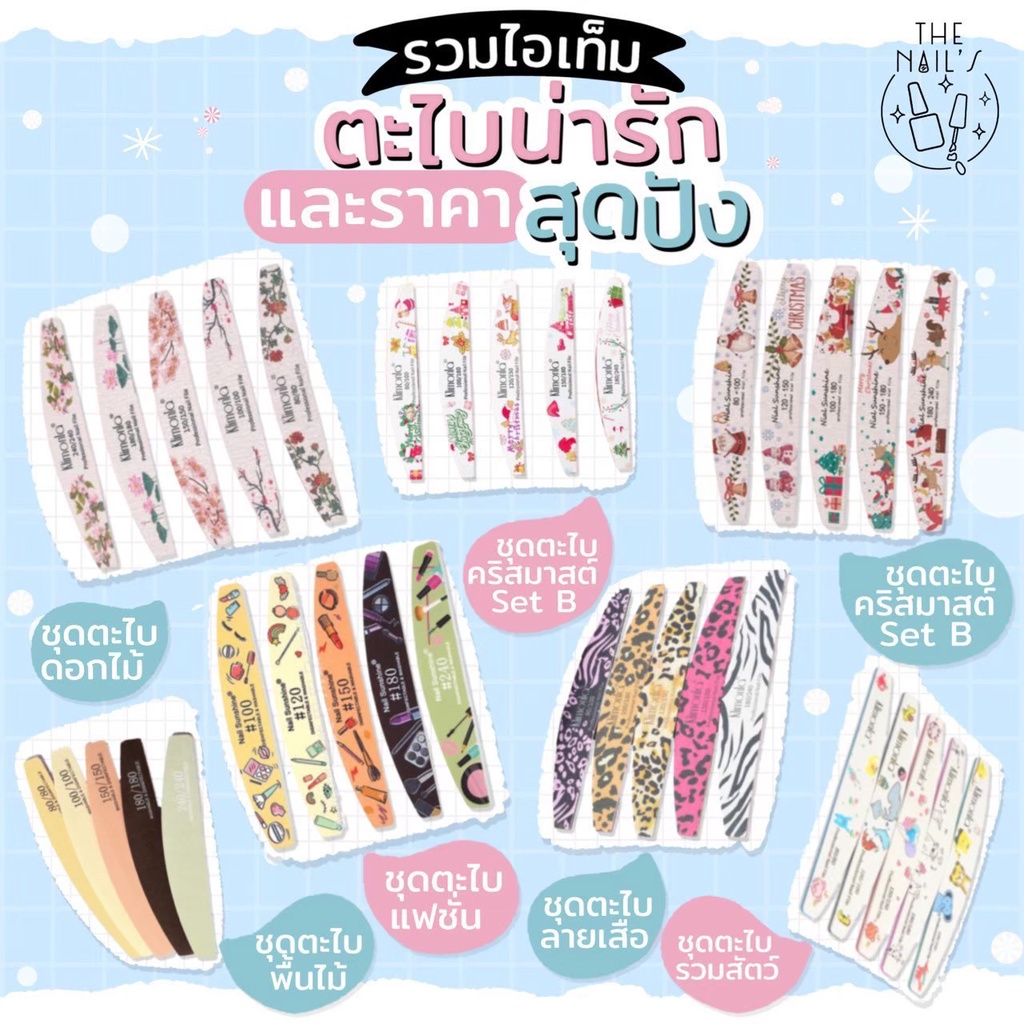 🎉พร้อมส่ง🎉รวม ตะไบเล็บ ตะไบ ทุกชนิด ไว้ในนี้แล้ว ตะไบหยาบ ละเอียด ลายดอกไม้ ลายเสือ ลายคริสมาส