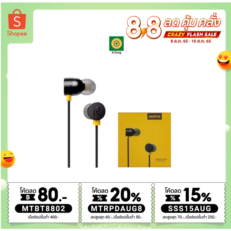 หูฟังเรียวมี Realme อินเอียร์ พร้อมแผงควมคุมอัจฉริยะ ไมโครโฟนในตัว ช่องเสียบแจ็คกลม3.5 mm