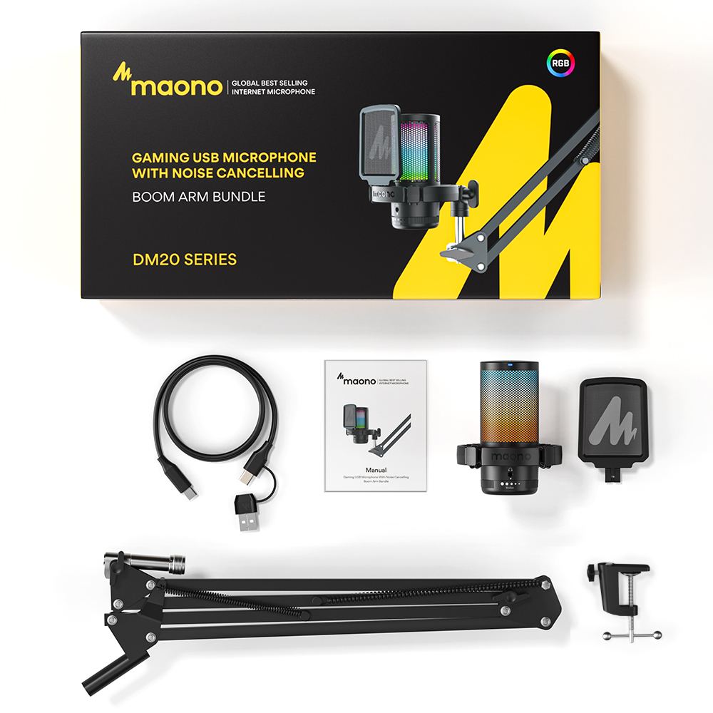 Maono DGM20S RGB USB ไมโครโฟนคอนเดนเซอร์ ตัดเสียงรบกวน พร้อมไมโครโฟน และไฟ RGB แจ็คหูฟัง 3.5 มม. สําหรับ PC สมาร์ทโฟน เล่นเกม สตรีมมิ่ง