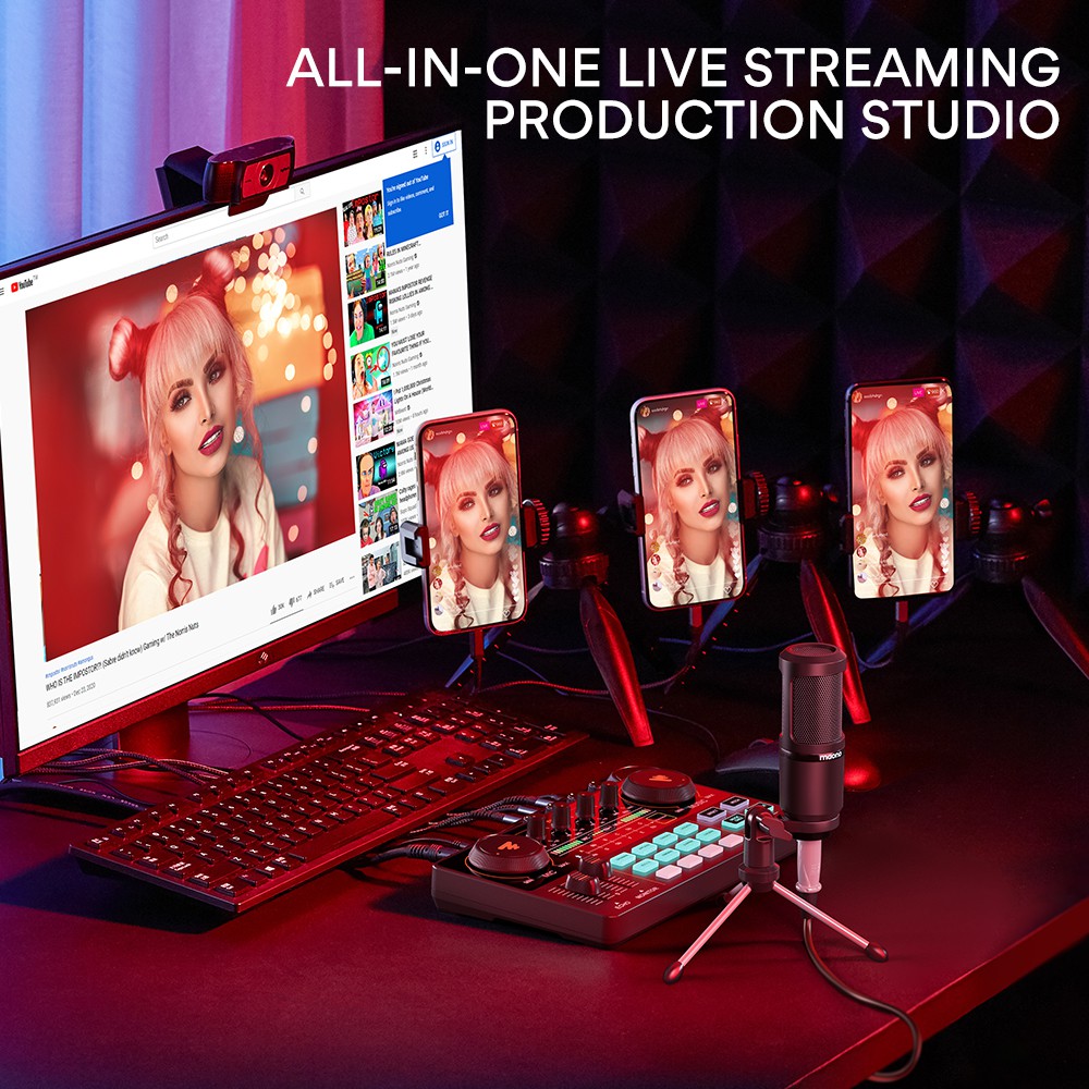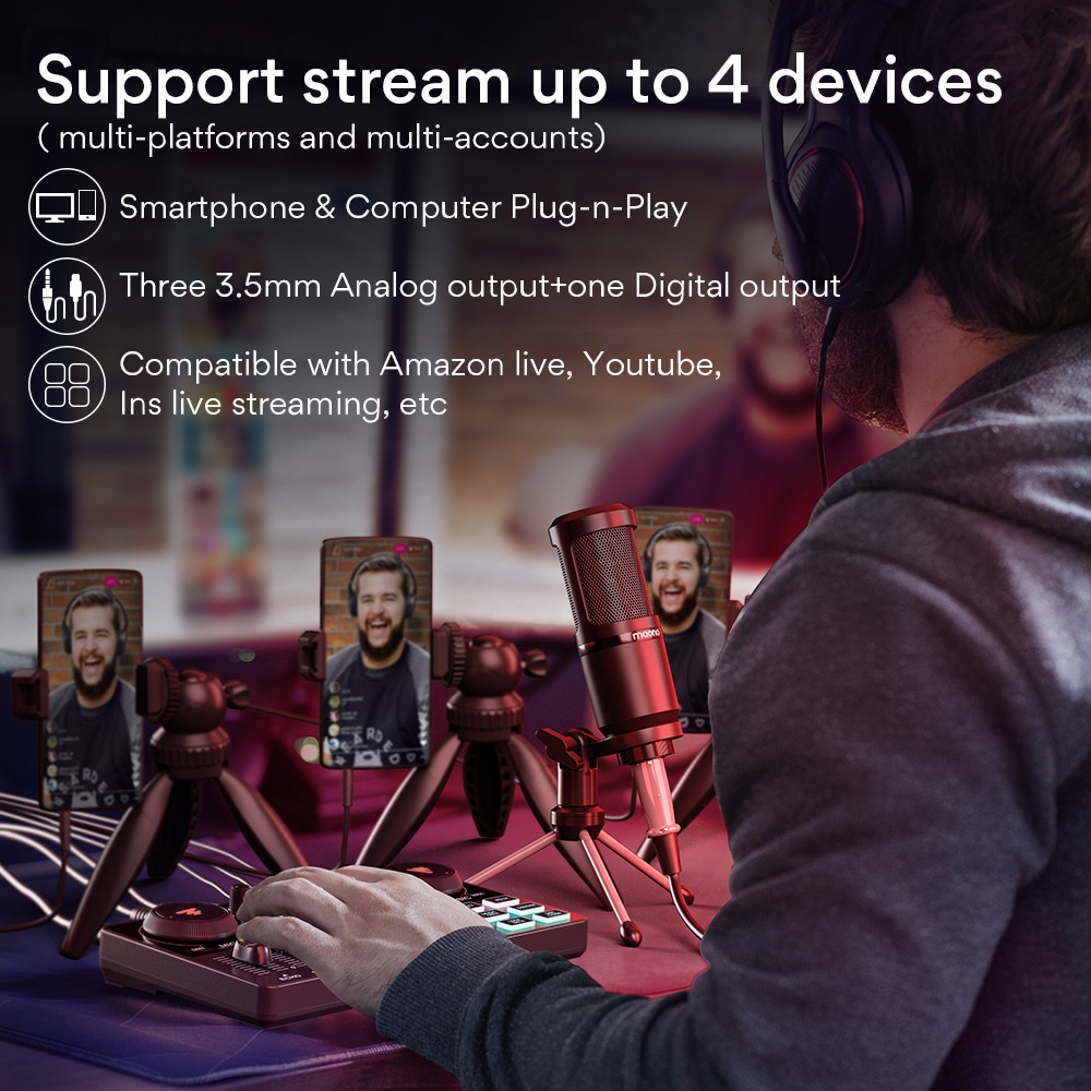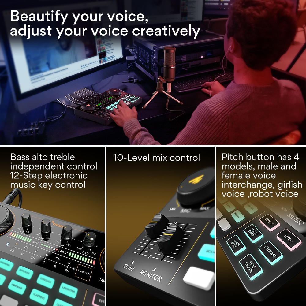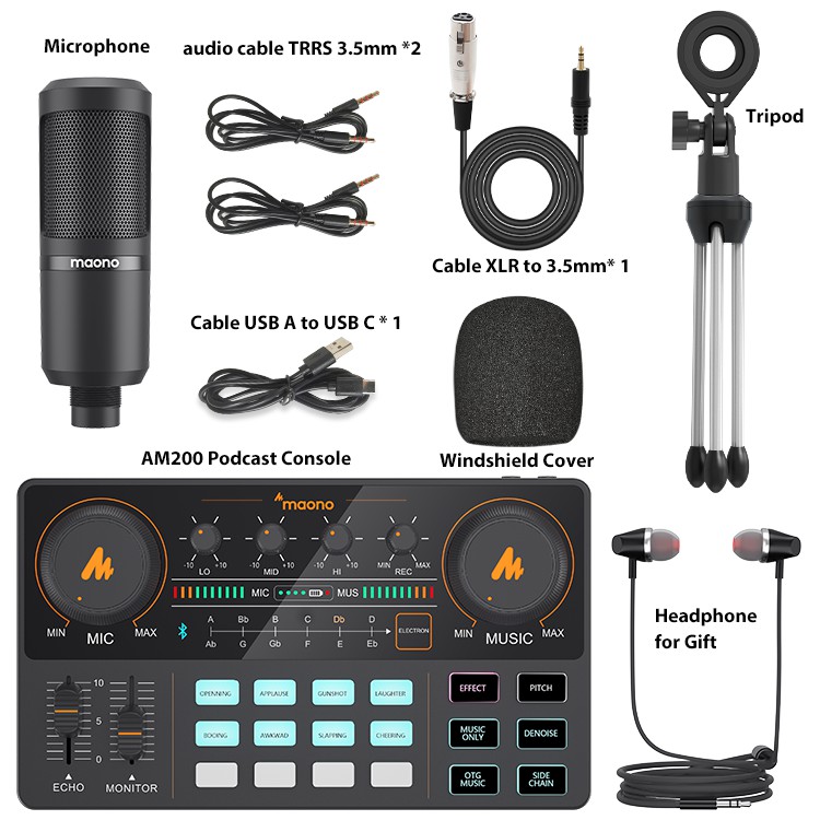 Maono AM200-S1 ชุดไมโครโฟนคอนเดนเซอร์การ์ดเสียง พร้อมอินพุตบลูทูธ สําหรับกีตาร์ โทรศัพท์ พีซี ไลฟ์สด บันทึกเสียง พอดแคสต์