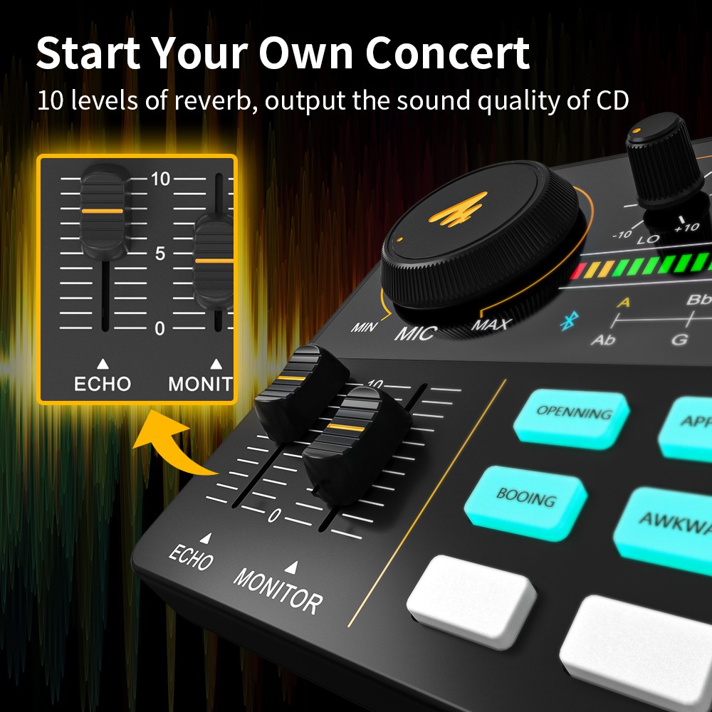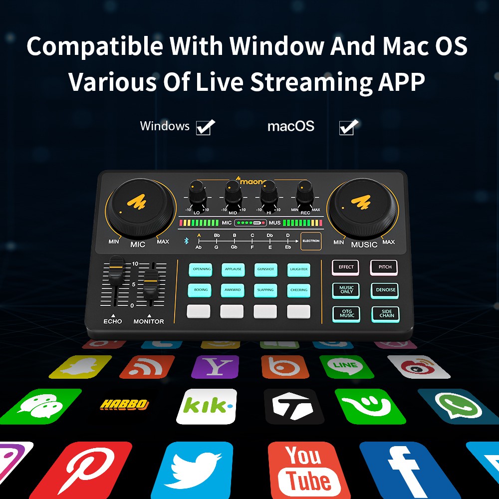 Maono AU-AM200 การ์ดเสียง มืออาชีพ พร้อมอินพุตบลูทูธ สําหรับโทรศัพท์ PC บันทึกเสียง ถ่ายรูป ถ่ายทอดสด