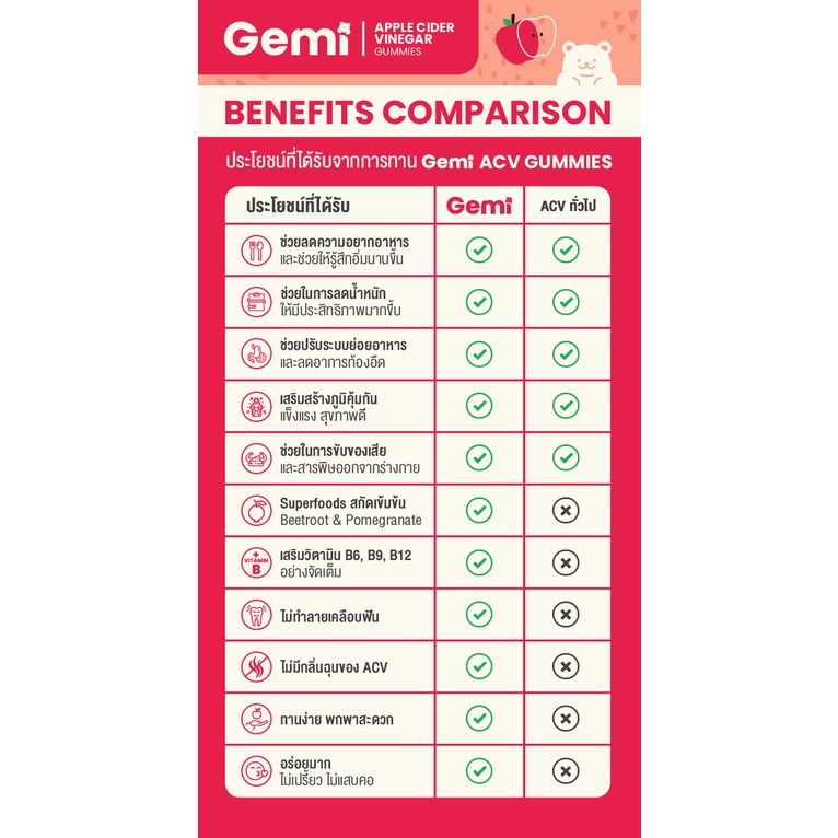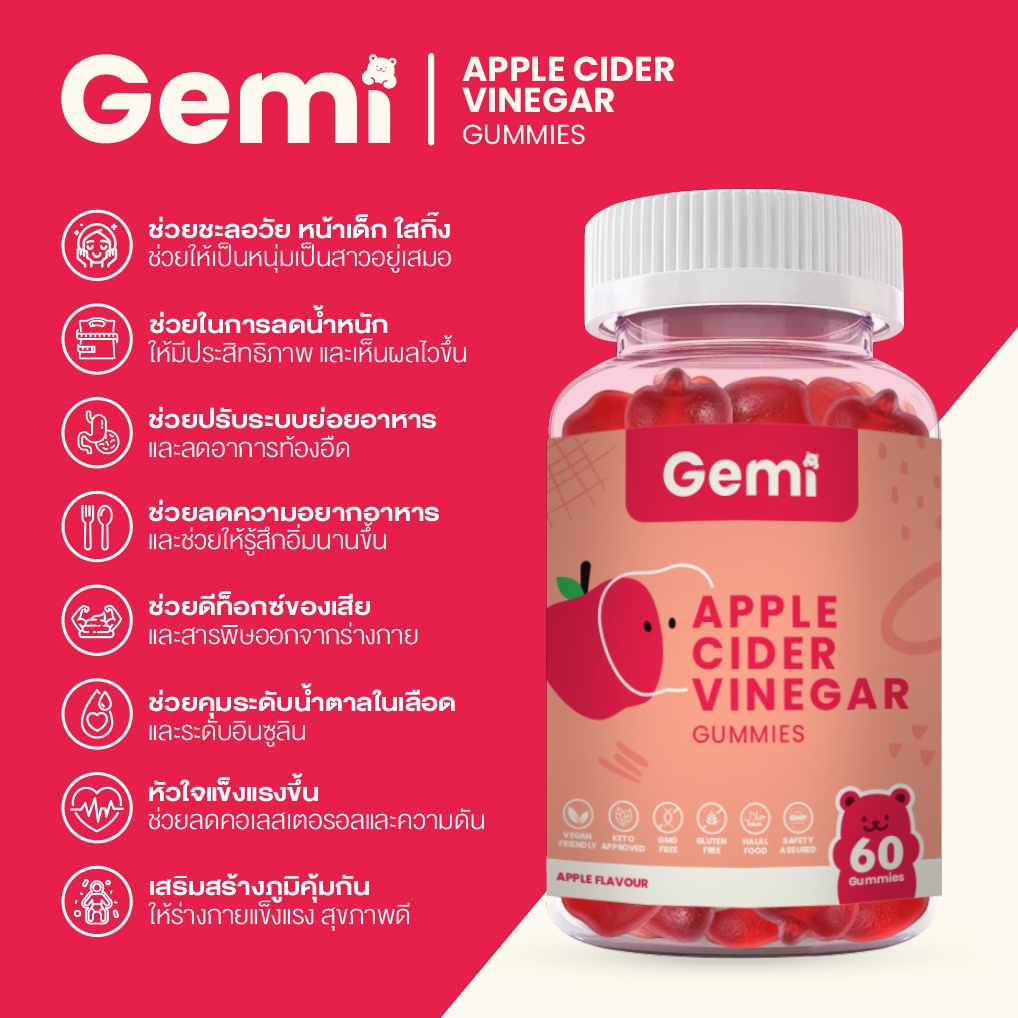 Gemi เจมมี่ แอปเปิ้ลไซเดอร์วิเนการ์กัมมี่ / Gemi Apple Cider Vinegar Gummy (ACV) / GemiGummi