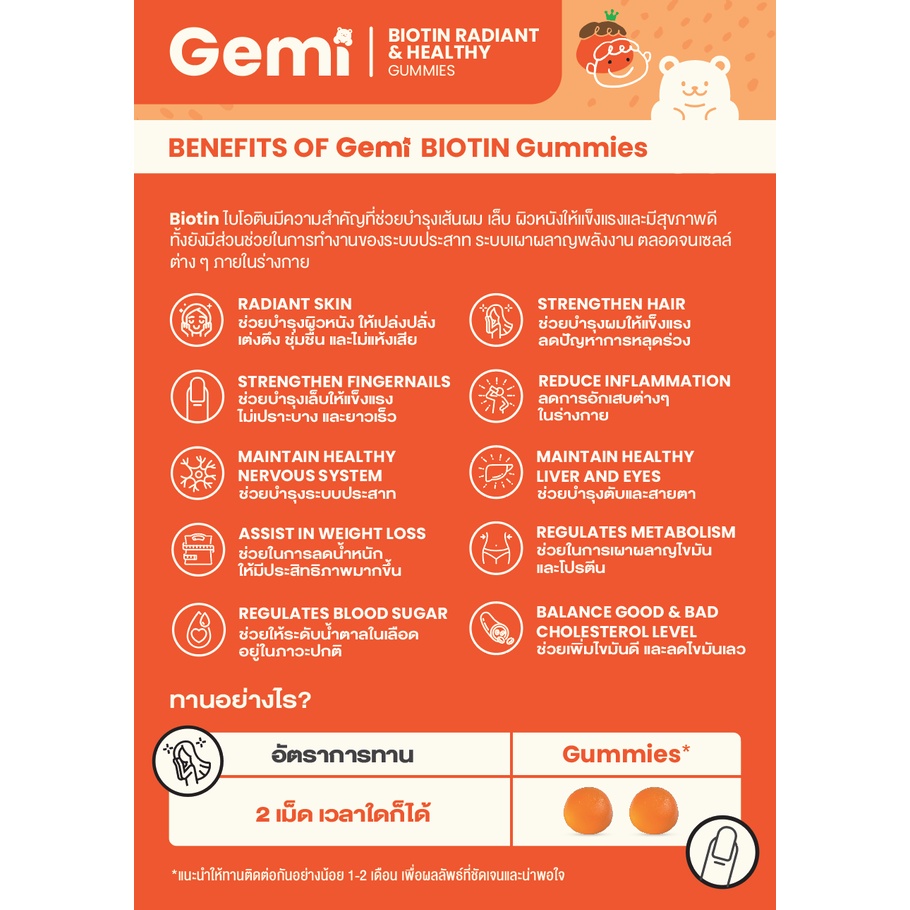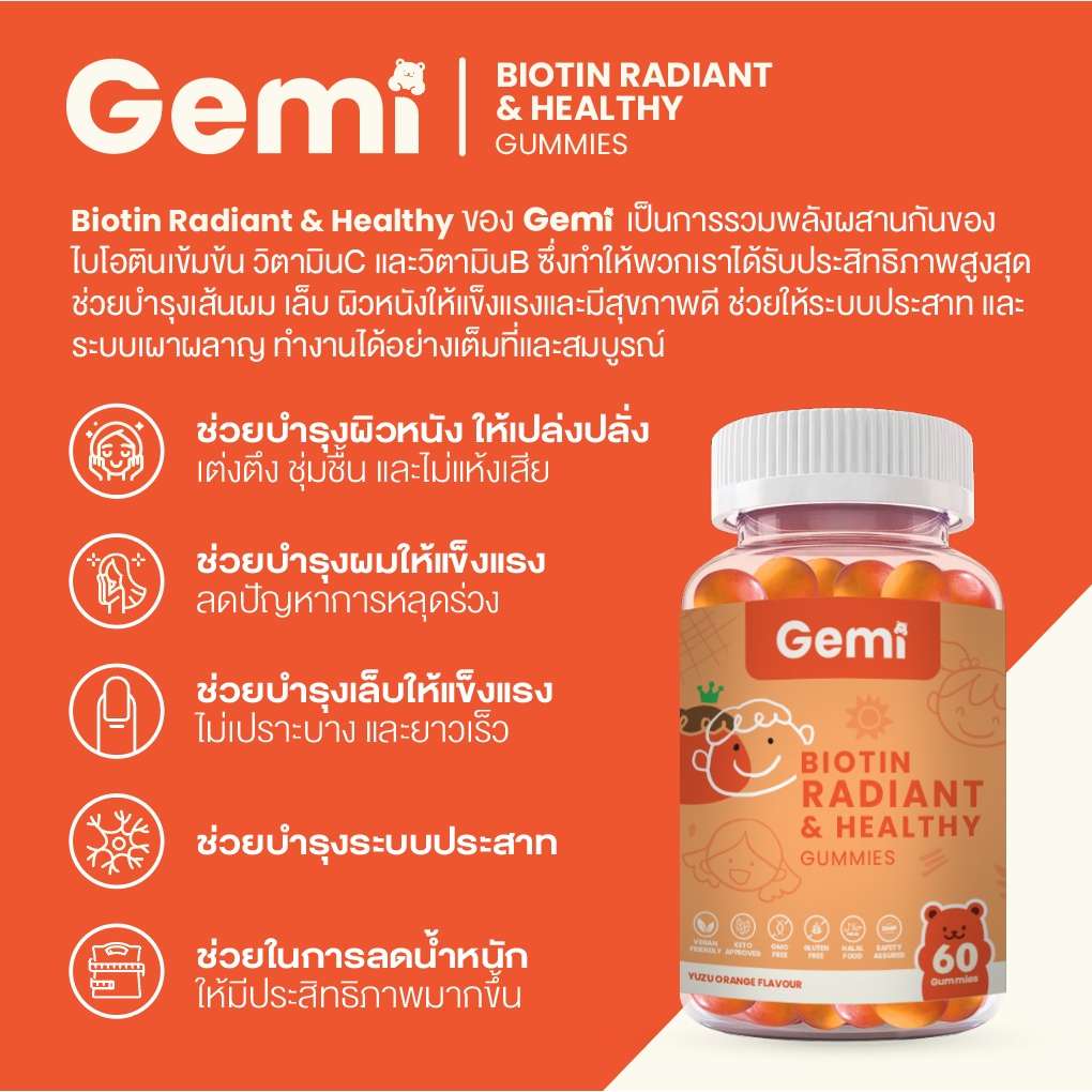 Gemi เจมมี่ ไบโอตินกัมมี่ 1 กระปุก / Gemi Biotin Gummy 1 Bottle / GemiGummi