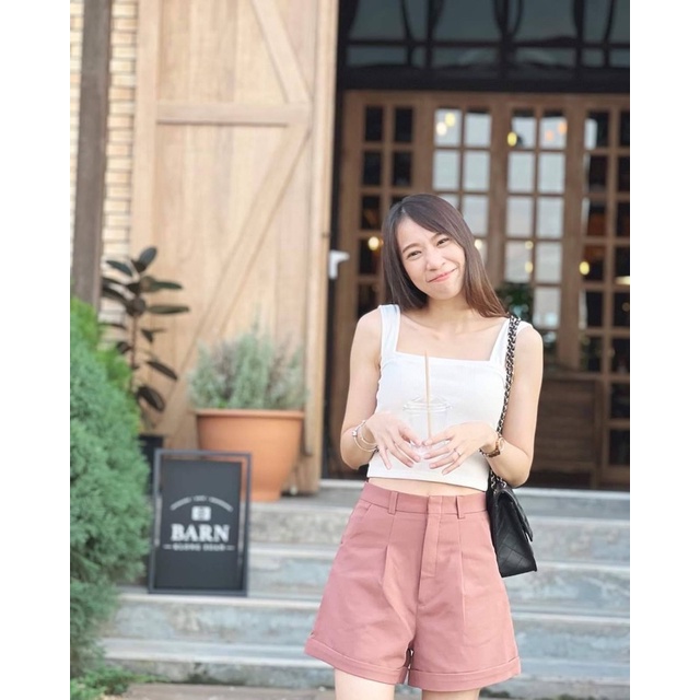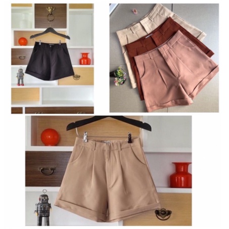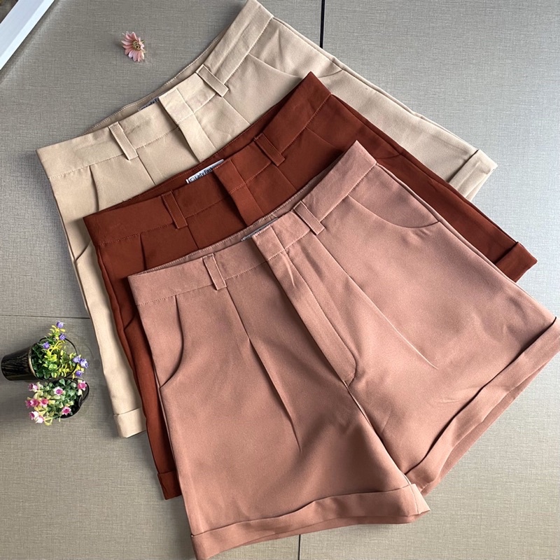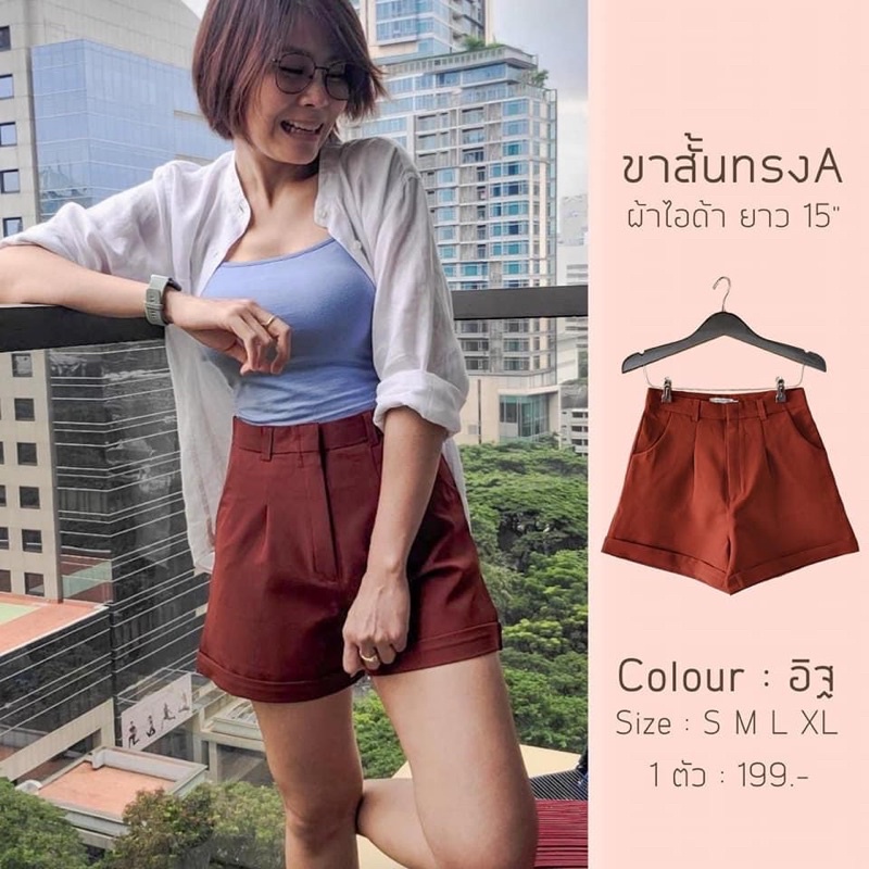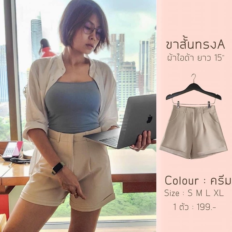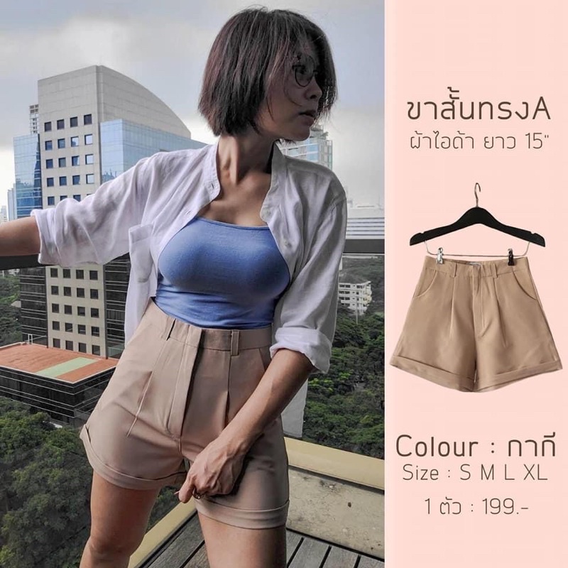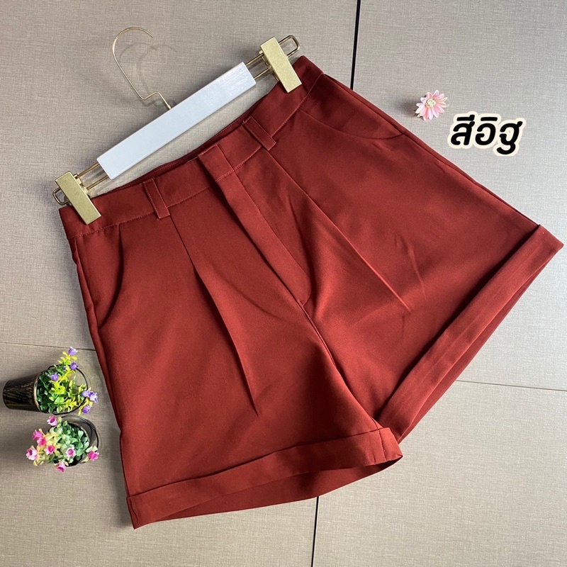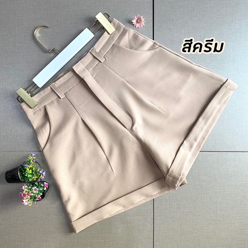 กางเกงขาสั้น ผ้าไอด้า รุ่น A ขาพับ ทรงสวย สีดำ อิฐ ปูน กากี ครีม ไซส์ S M L XL