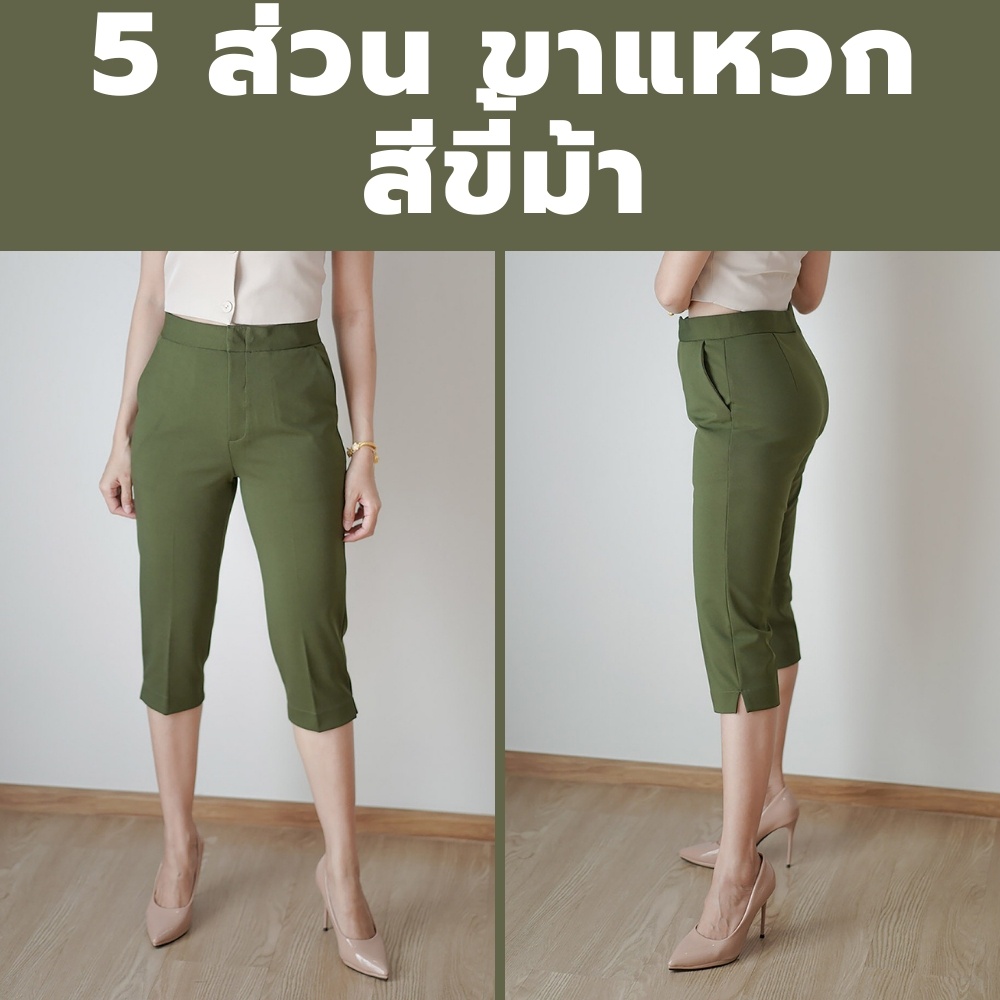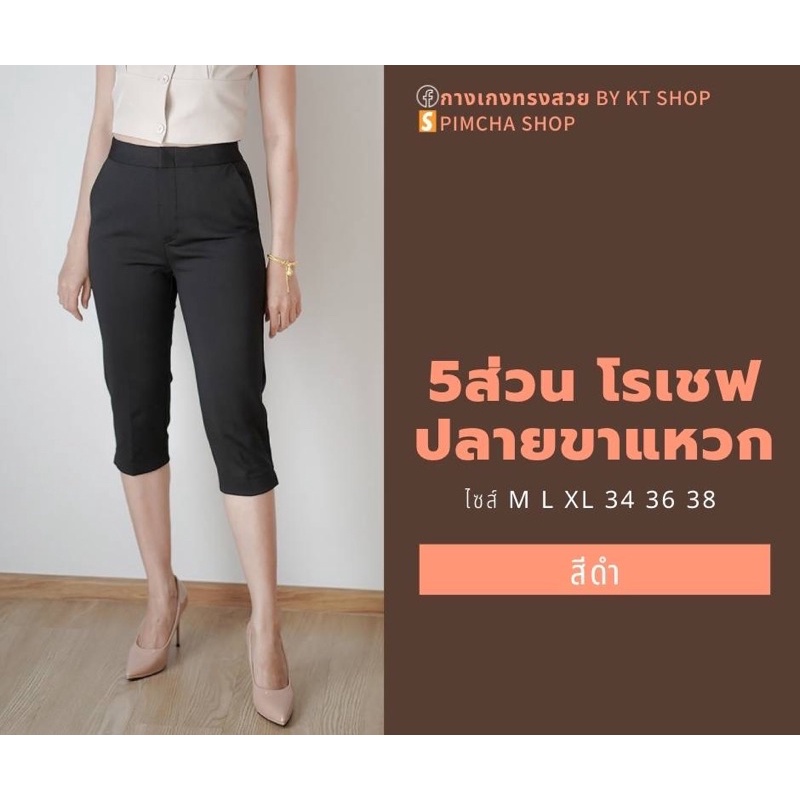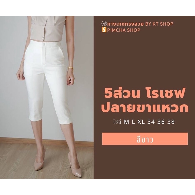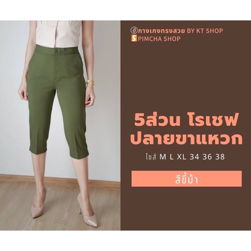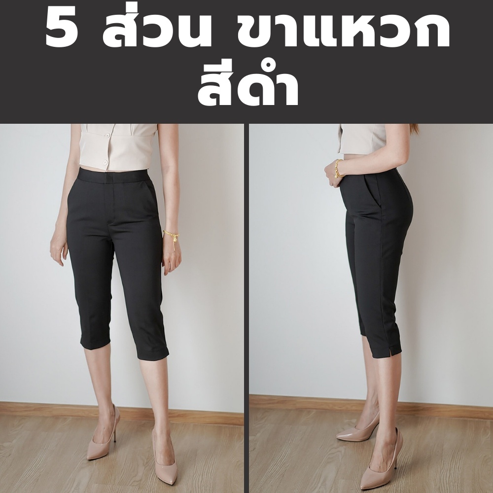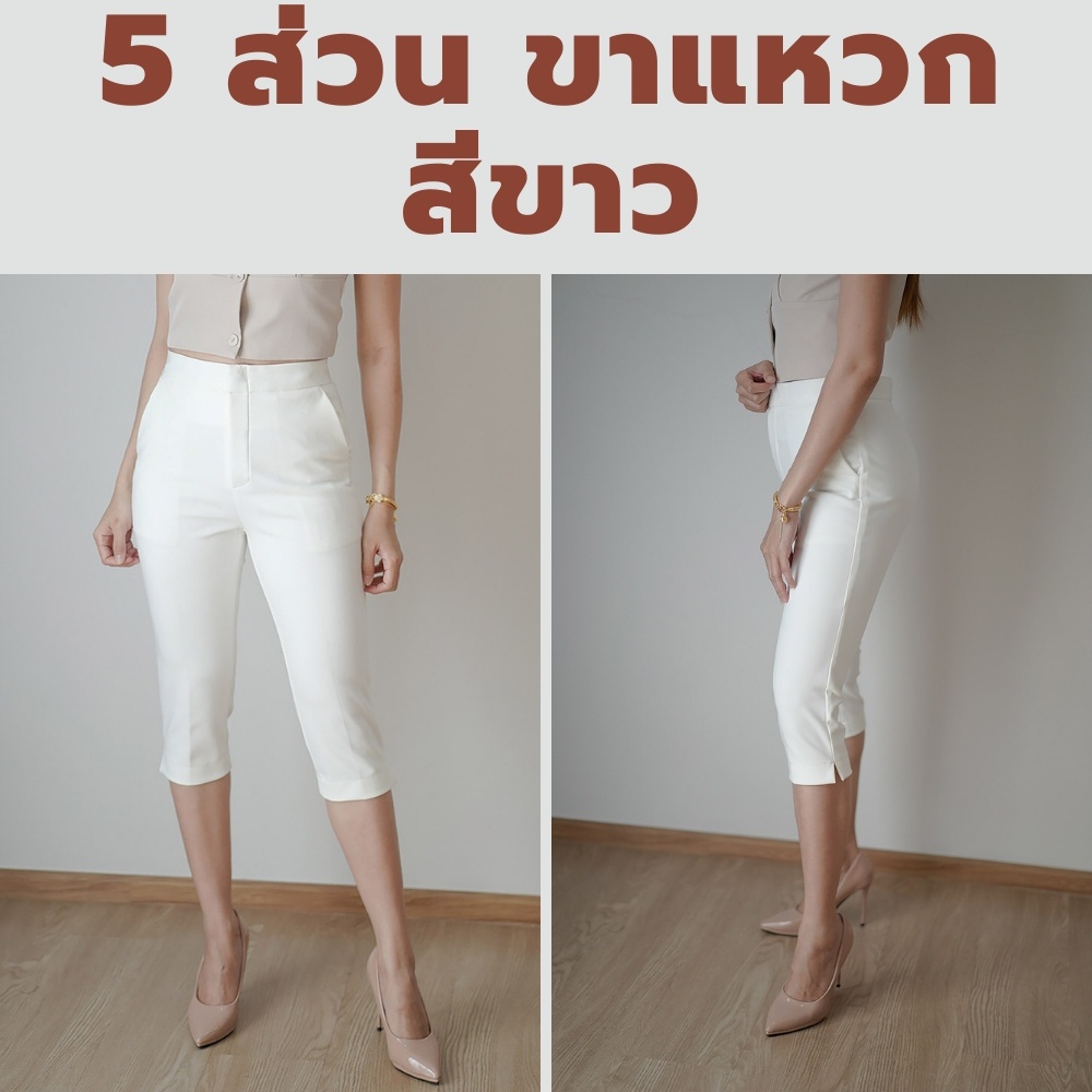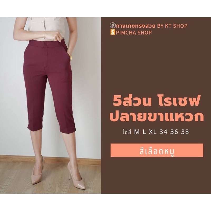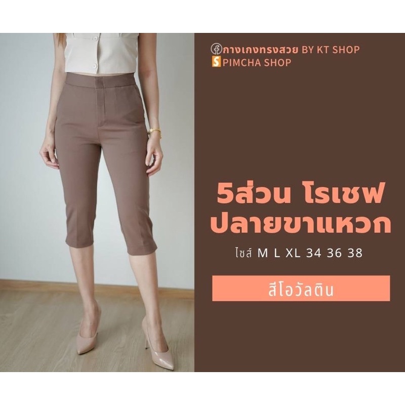 กางเกง 5 ส่วน ผ้าโรเชฟแท้ เกรดพรีเมี่ยม ทรงสวย ปลายขาผ่าข้าง ใส่สบายไม่ต้องรีด