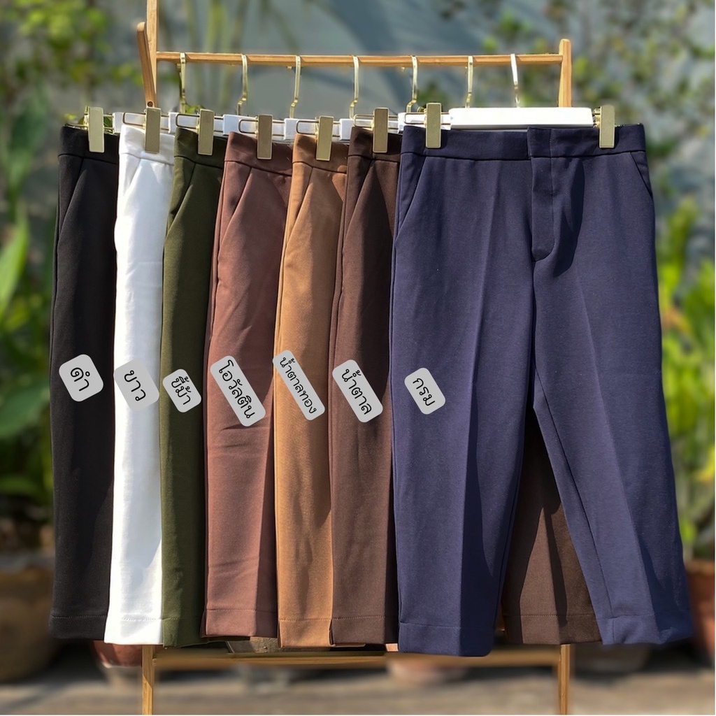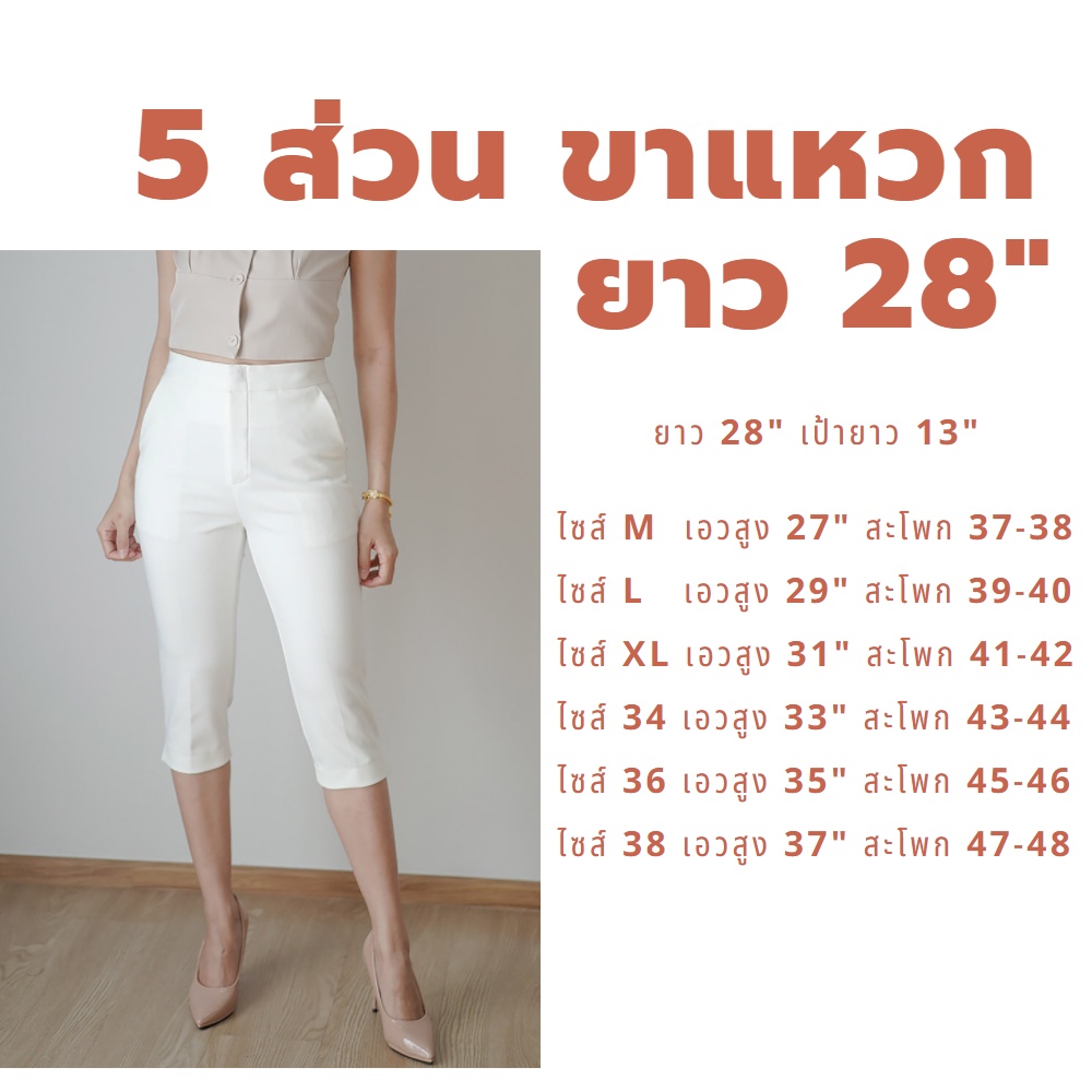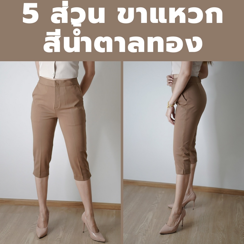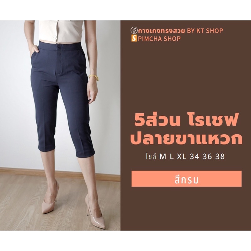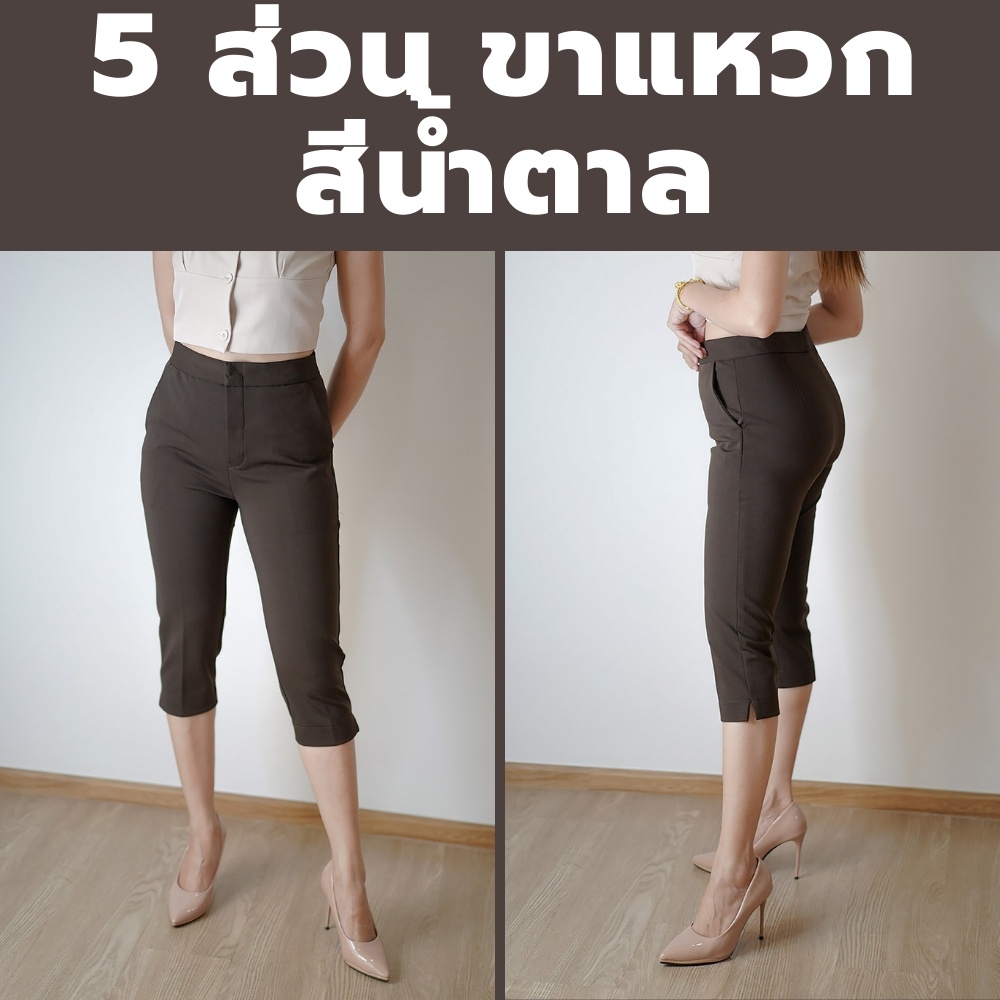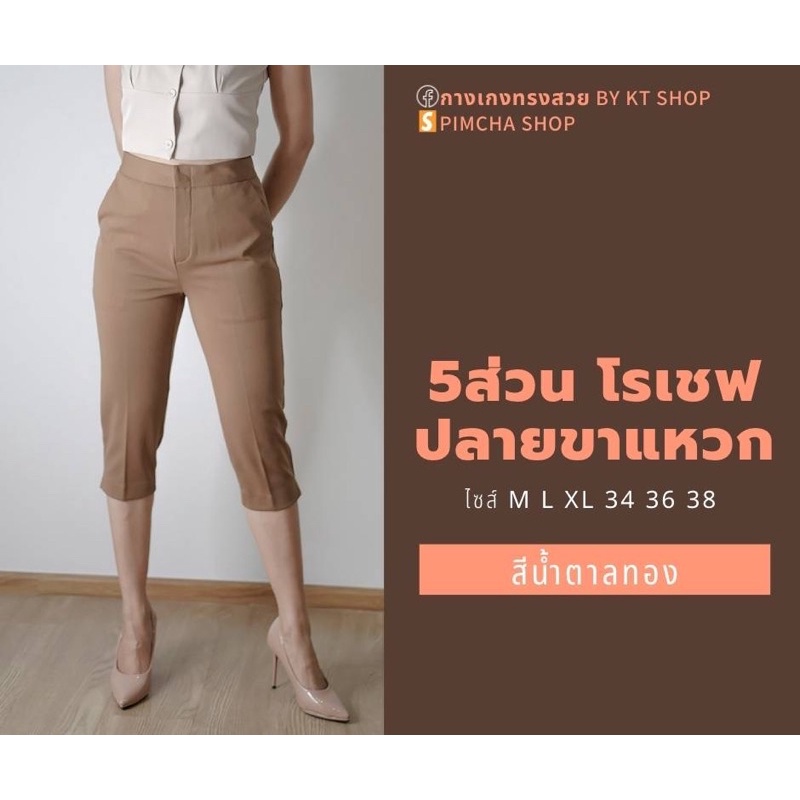 กางเกง 5 ส่วน ผ้าโรเชฟแท้ เกรดพรีเมี่ยม ทรงสวย ปลายขาผ่าข้าง ใส่สบายไม่ต้องรีด