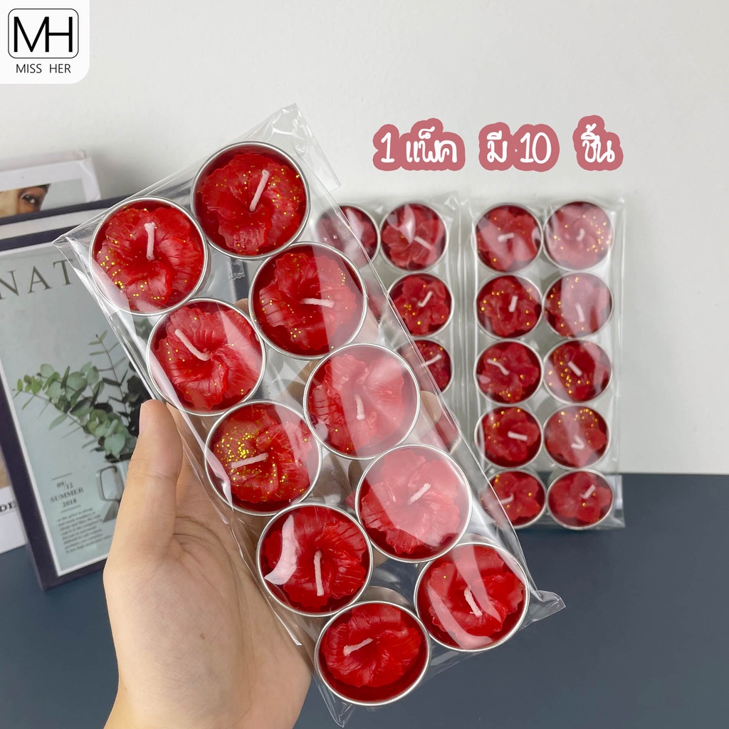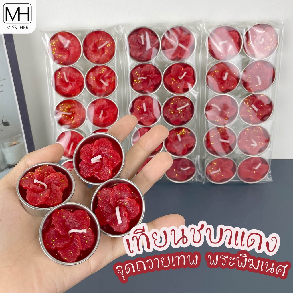เทียนดอกไม้ เทียน เทียนชบาแดง ถวายบูชาพิฆเนศ ชบาแดง เทียนหอม เทียนชบา 10ถ้วย เทียนสปา เทียนทีไลท์ Scented Candles