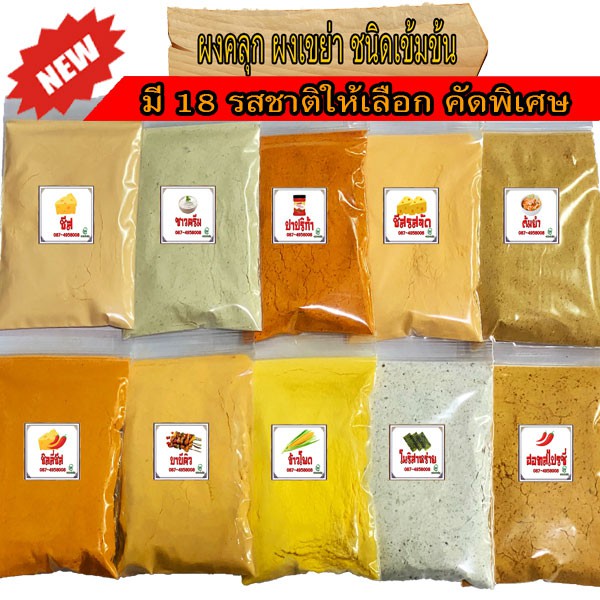 ผงปรุงรส ผงเขย่า มีหลายรสชาติอร่อยมาก ชนิดเข้มข้น ผงชีส ผงบาบีคิว ผงปาปริก้า ผงวิงแซ่บ ผงเฟรนฟราย