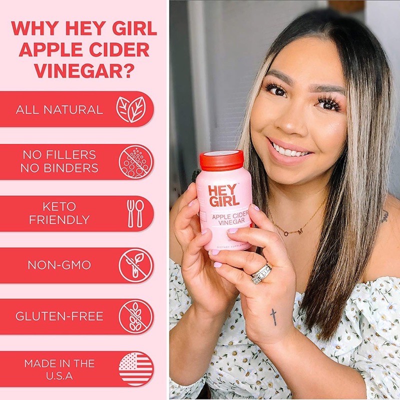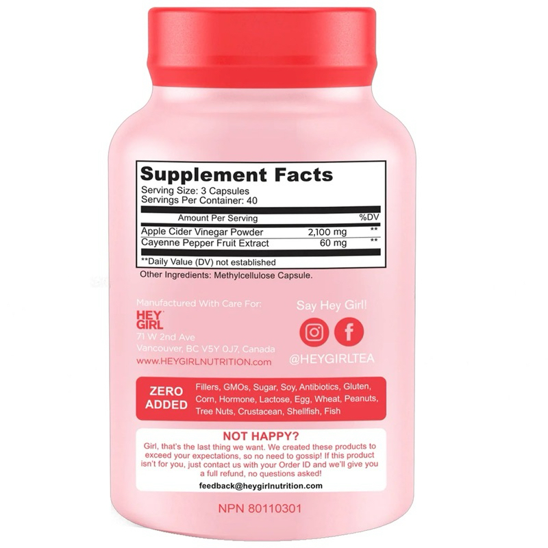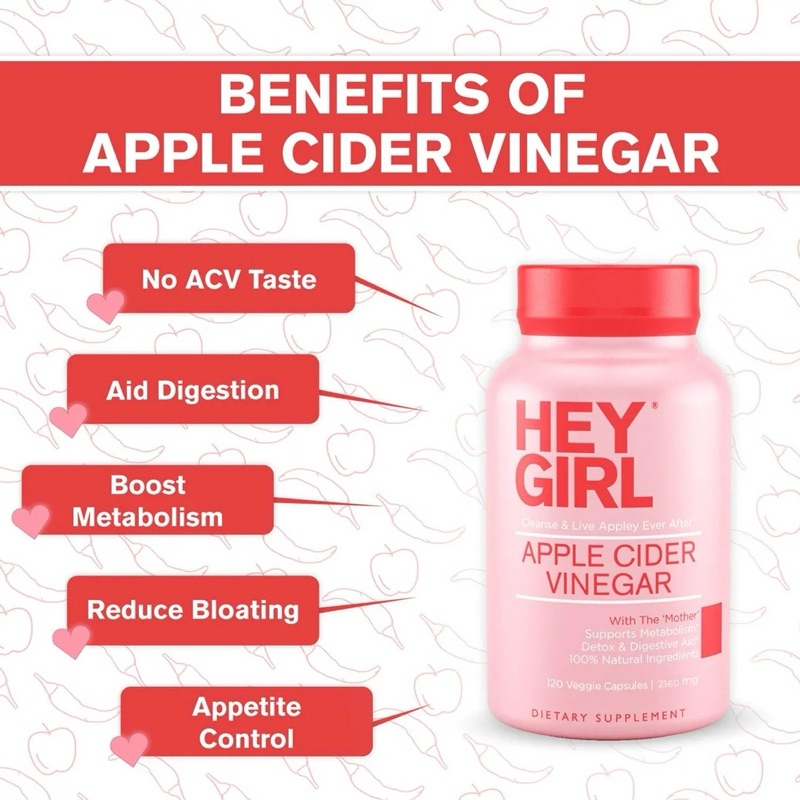 Apple cider vinegar Hey girl ปริมาณ 2160mg ขนาด 120แคปซูล