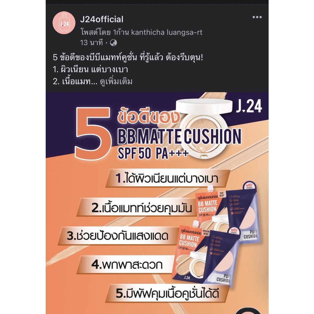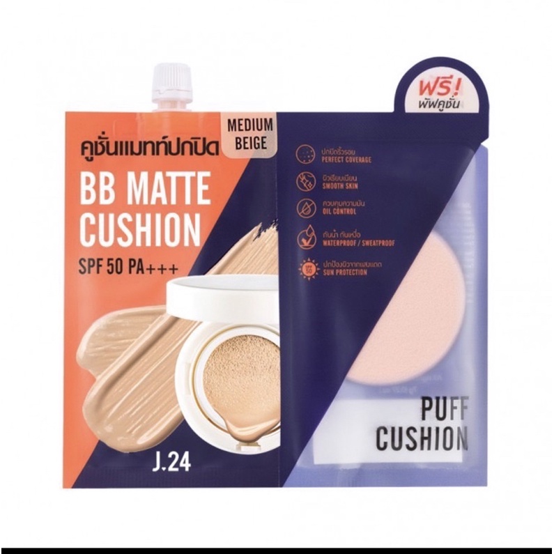 แถม พัฟ cathy doll J24 BB Matte Cushion SPF50 PA+++ 7g บีบี คุชชั่น คูชั่น ปกปิด คุมมัน พร้อมพัฟ