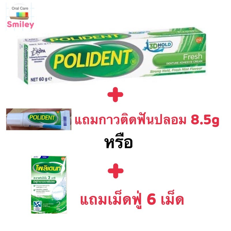 ซื้อ 1 บา ท ลูกค้าใหม่ ฉลากไทย แท้100%กาวติดฟันปลอม ครีมติดฟันปลอม polident โพลิเด้นท์ 60g, 20gติดฟันปลอมให้แน่น ไม่หลุด