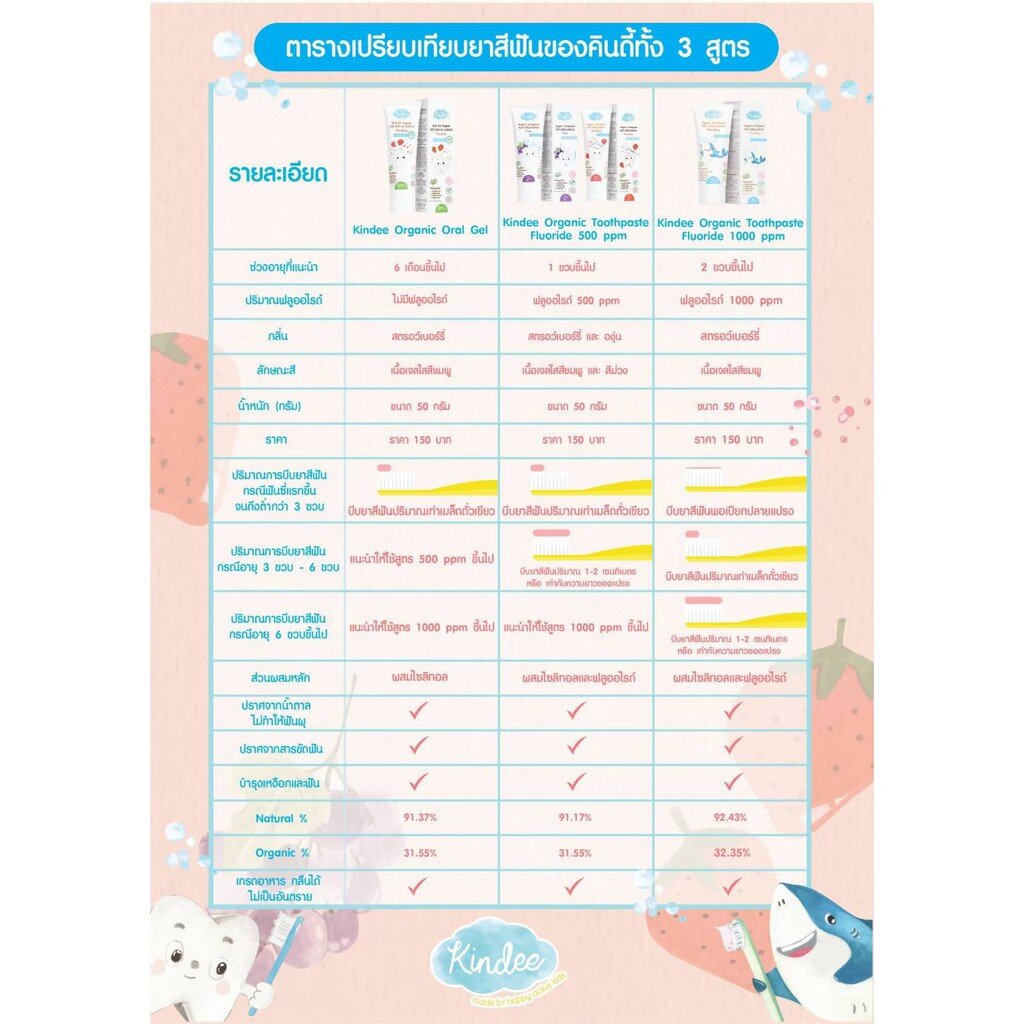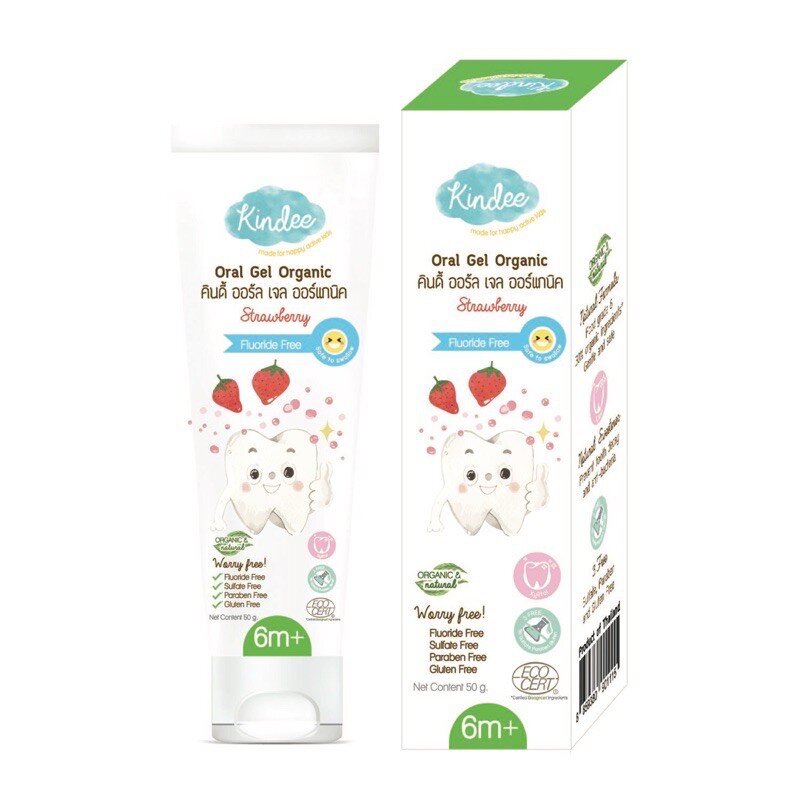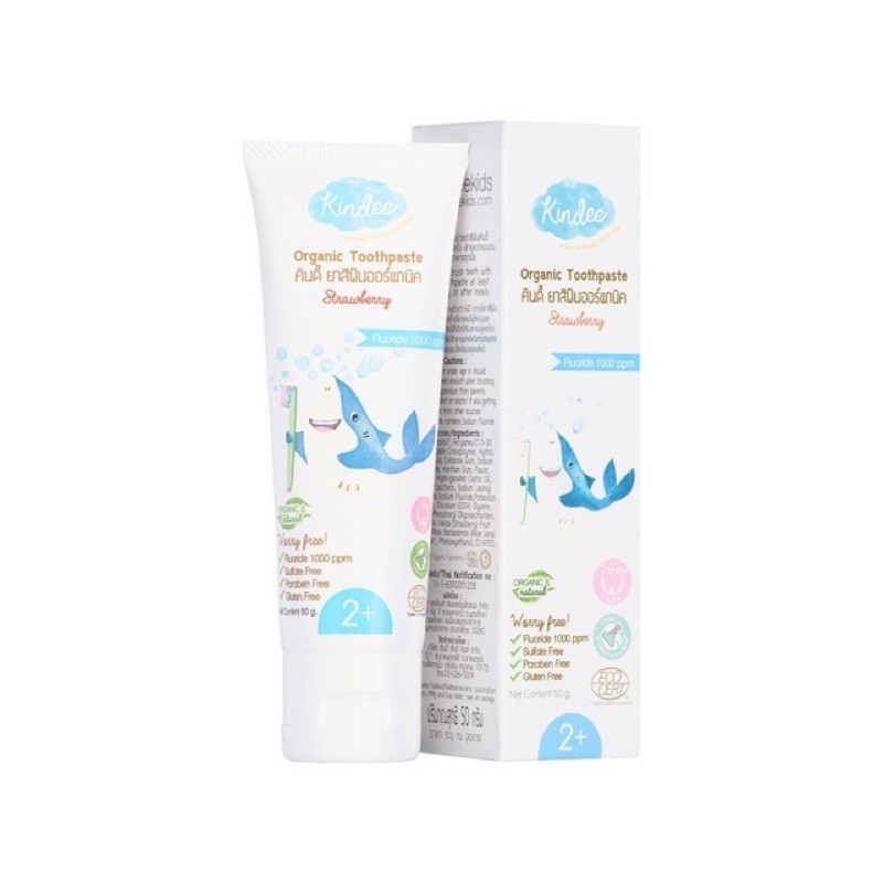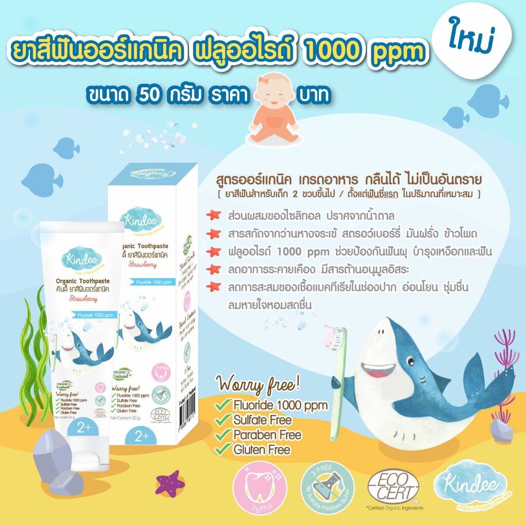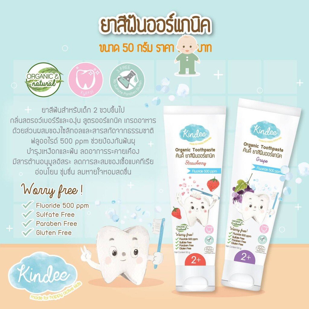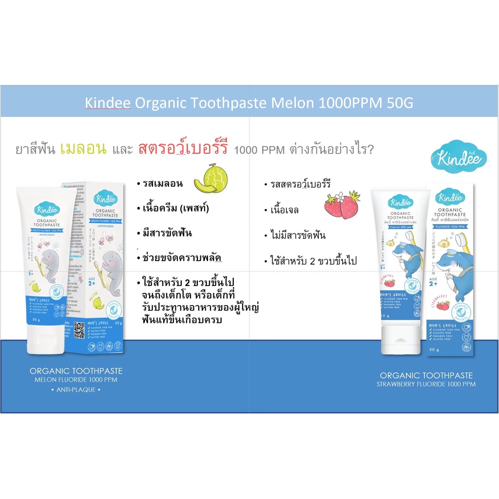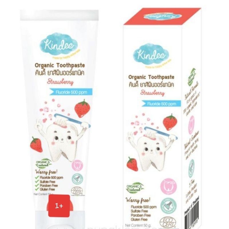 Kindee ยาสีฟันเด็ก ยาสีฟันออแกนิค 0.6 - 12 ขวบ ยาสีฟันกลืนได้ ไม่มีน้ำตาล มีหลายรส 50 กรัม