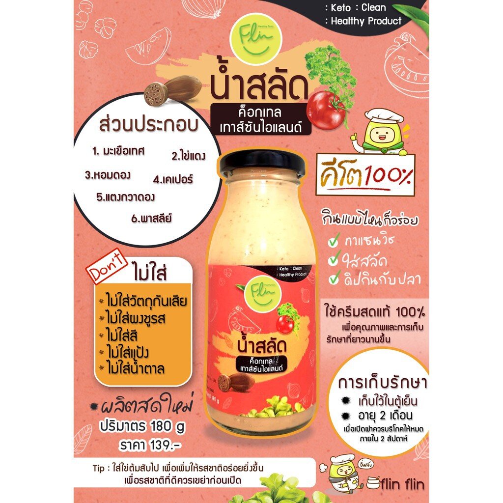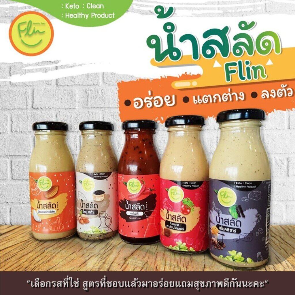 KETO/CLEAN "น้ำสลัด ฟลิน" 5 สูตร 5 รสชาติ ปริมาตร 180 มล. น้ำสลัดคลีน น้ำสลัดคีโต ไม่มีแป้ง ไม่มีน้ำตาล ไม่ใส่สารกันเสีย