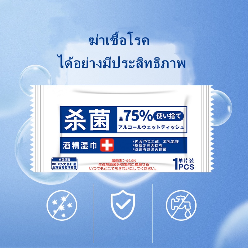 ทิชชู่เปียกทำความสะอาดฆ่าเชื้อโรค แอลกอฮอล์ แผ่นเช็ดทำความสะอาด ผ้าเช็ดทางการแพทย์ 75%(1PCS)
