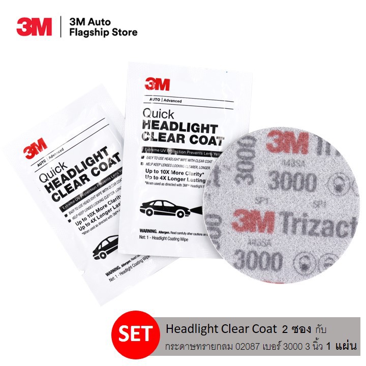 3M ชุดขัดโคมไฟหน้ารถยนต์ (Headlight Clear Coat 2 ซอง + กระดาษทรายกลม 02087 เบอร์ 3000 3 นิ้ว 1 แผ่น )