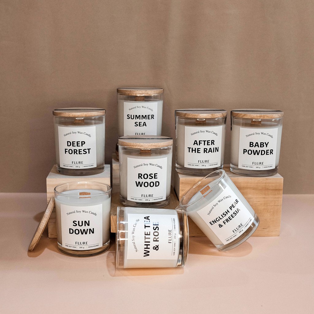 (ส่วนลด 30% 100 บาท ทักแชท)เทียนหอมไขถั่วเหลือง 100% แบบแก้วฝาไม้ กลิ่นชัดหอมนาน ไส้ไม้ลดควัน