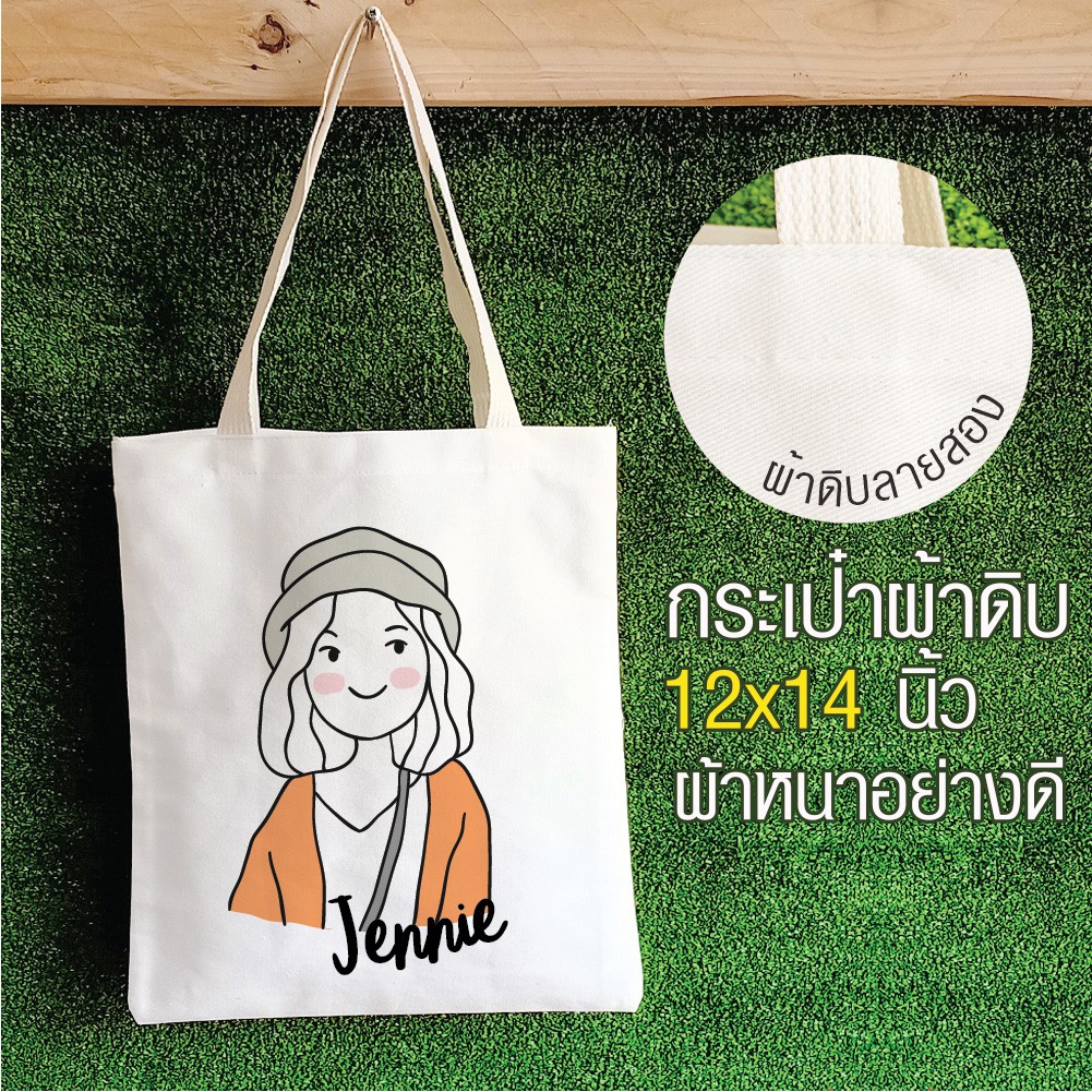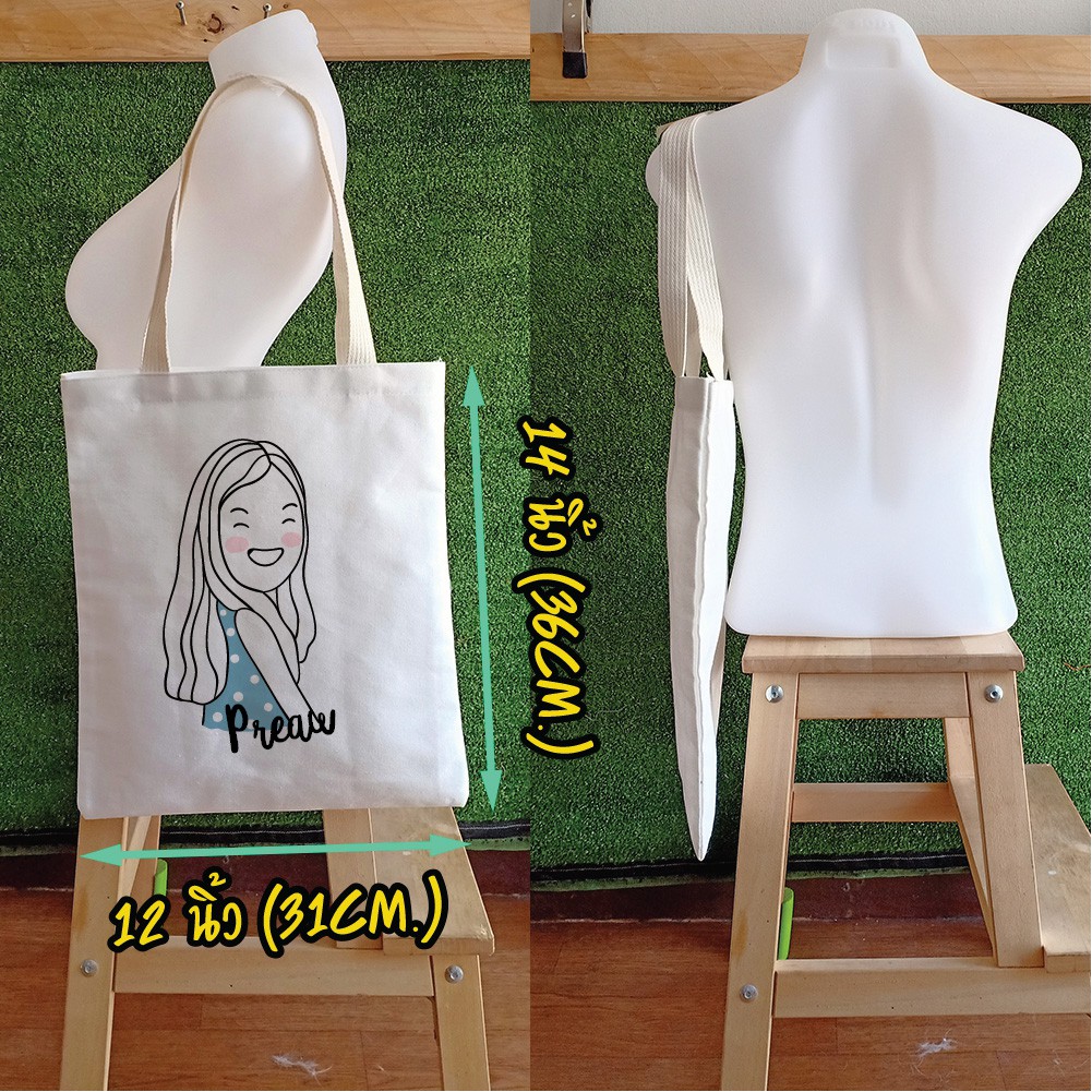 💥กระเป๋าผ้า ถุงผ้า เติมชื่อได้ Name Bags Collection Minimal Girl💥