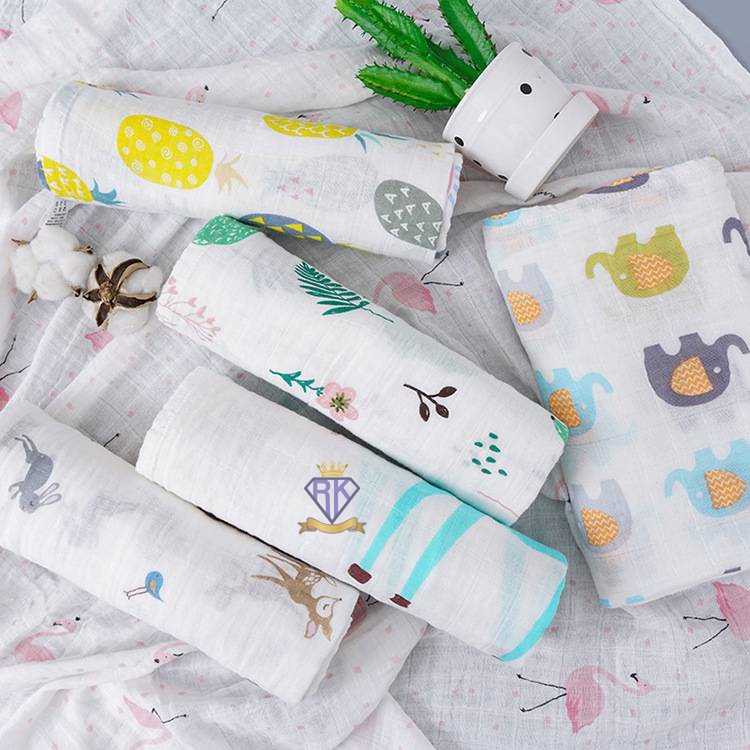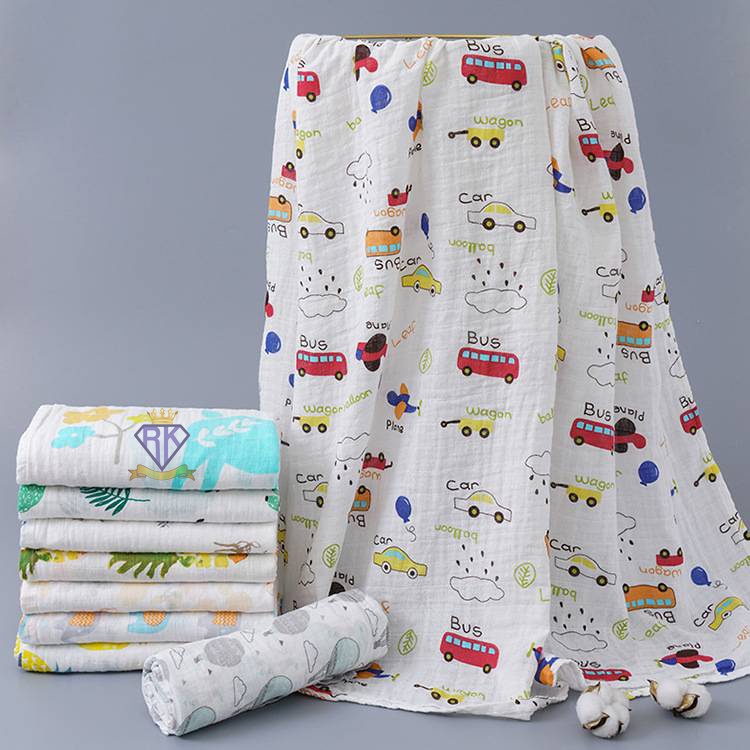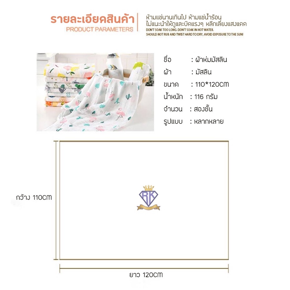 C008 ผ้าห่อตัวผ้าผืนใหญ่ ยิ่งซักยิ่งนุ่ม ผ้าห่มเด็ก ปูรองนอน มัสลินแบมบู ผสมคอตอน เนื้อหนานุ่ม ขนาด120x120cm.