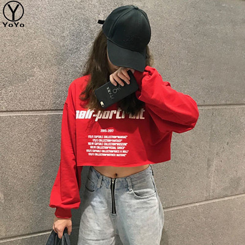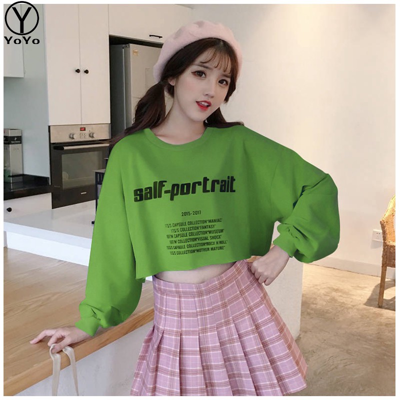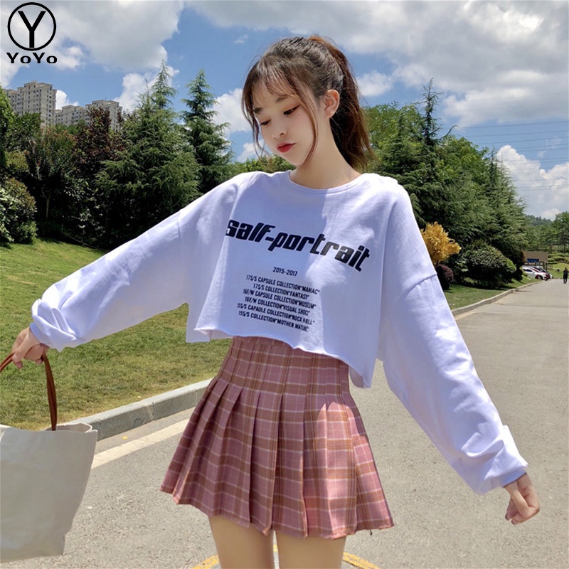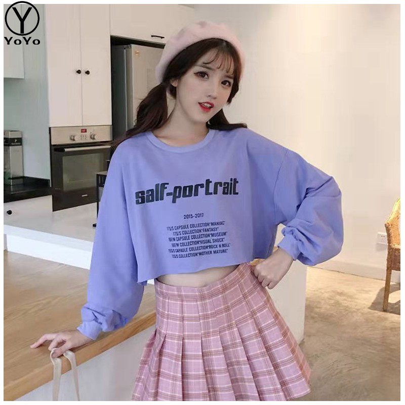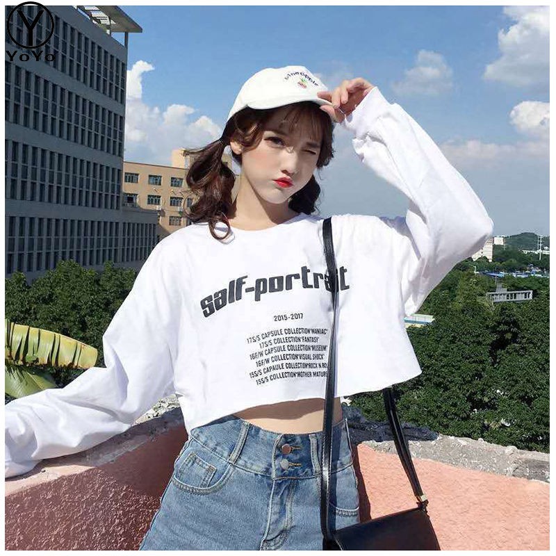 YOYO เสื้อยืดผู้หญิง แขนยาว สไตล์เกาหลี ลายการ์ตูน เอวลอย น่ารักใสๆ รุ่นD063