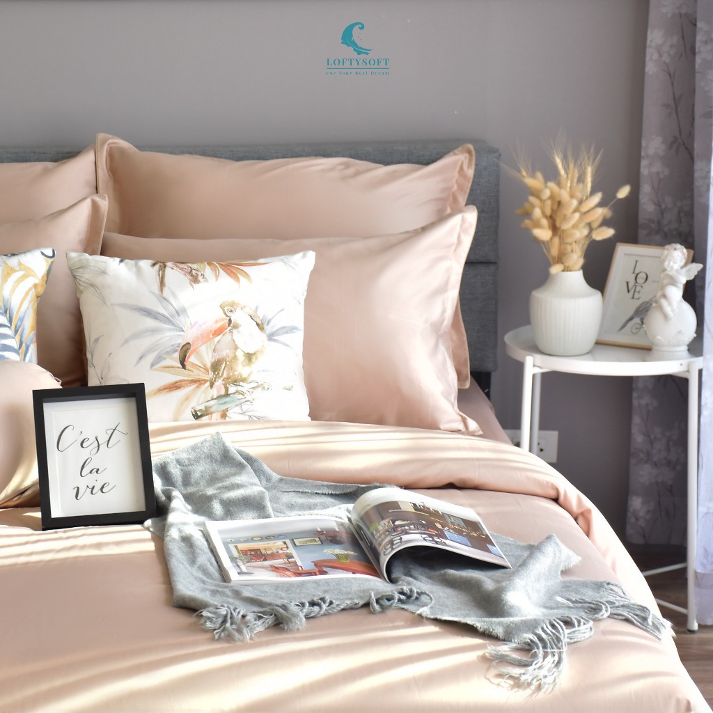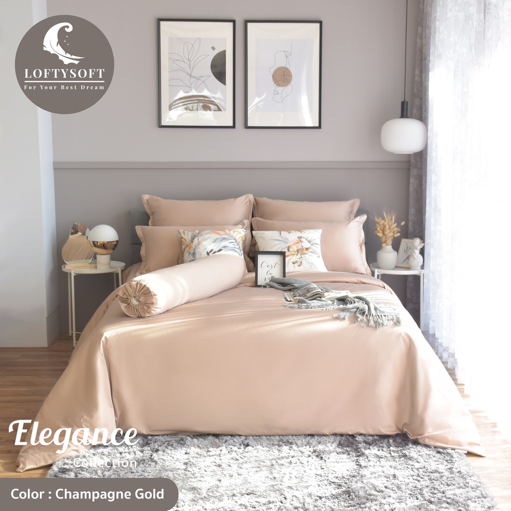 LOFTYSOFT ชุดผ้าปูที่นอน 6ฟุต KING, 5ฟุต QUEEN, 3.5ฟุต SINGLE CottonSilk 550เส้นด้าย Elegance Collection- Champagne Gold