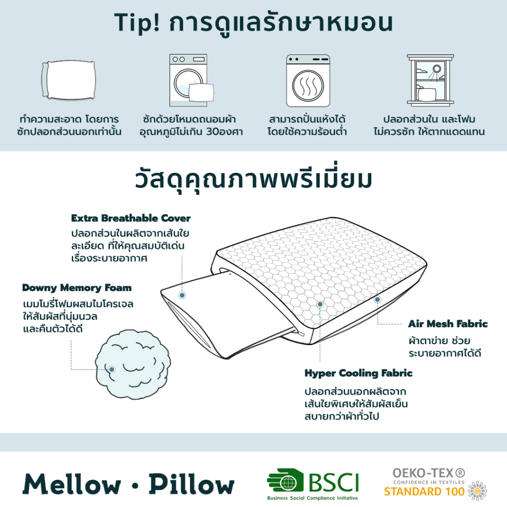 LOFTYSOFT หมอน Mellow หมอนเมมโมรี่โ ฟม ปรับใยสูงต่ำได้ หมอนสุขภาพ หมอนเย็น นุ่มแน่น หลับสบายทั้งคืน