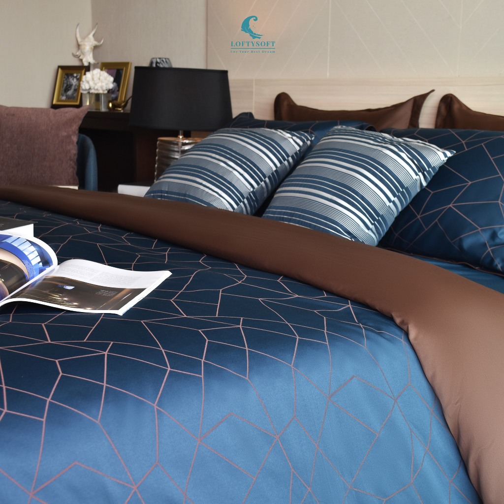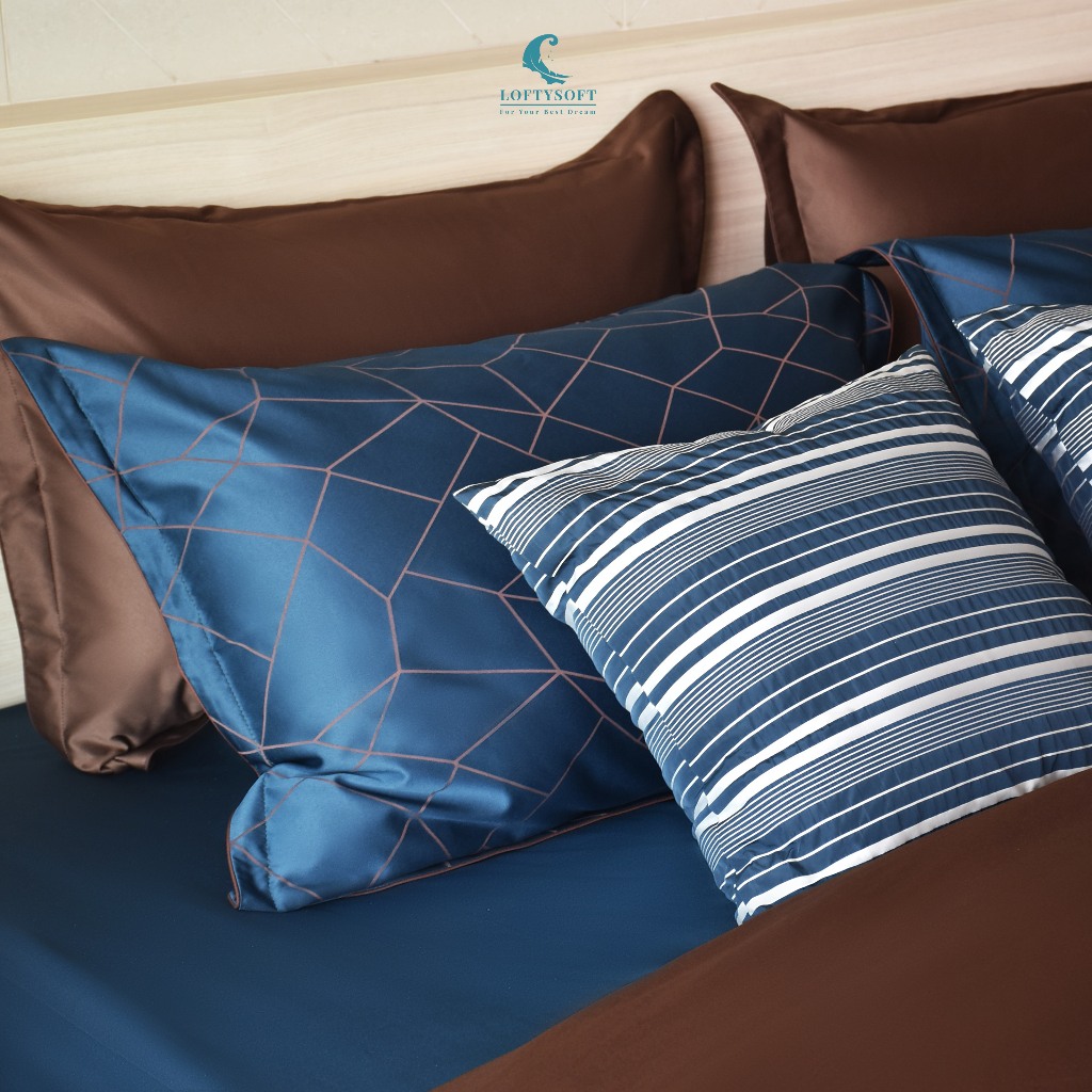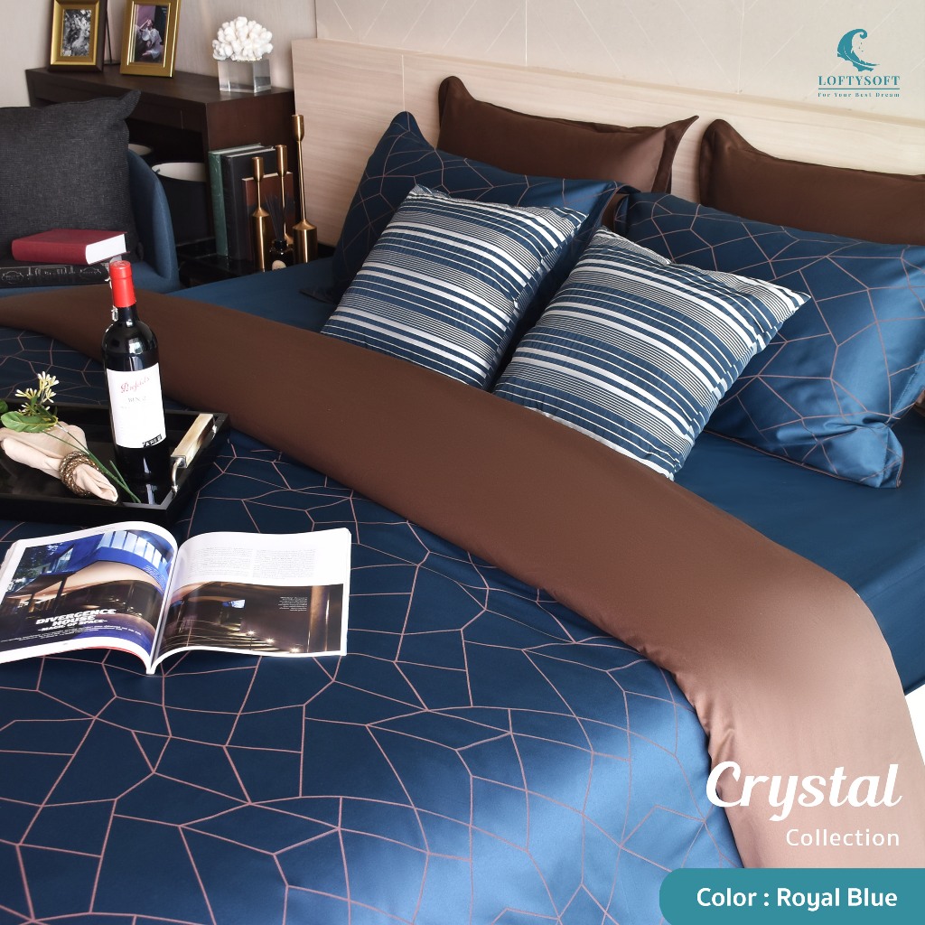 LOFTYSOFT ชุดผ้าปูที่นอน 6ฟุต KING, 5ฟุต QUEEN, 3.5ฟุต SINGLE Cotton Silk 550เส้นด้าย Crystal Collection - Royal Blue