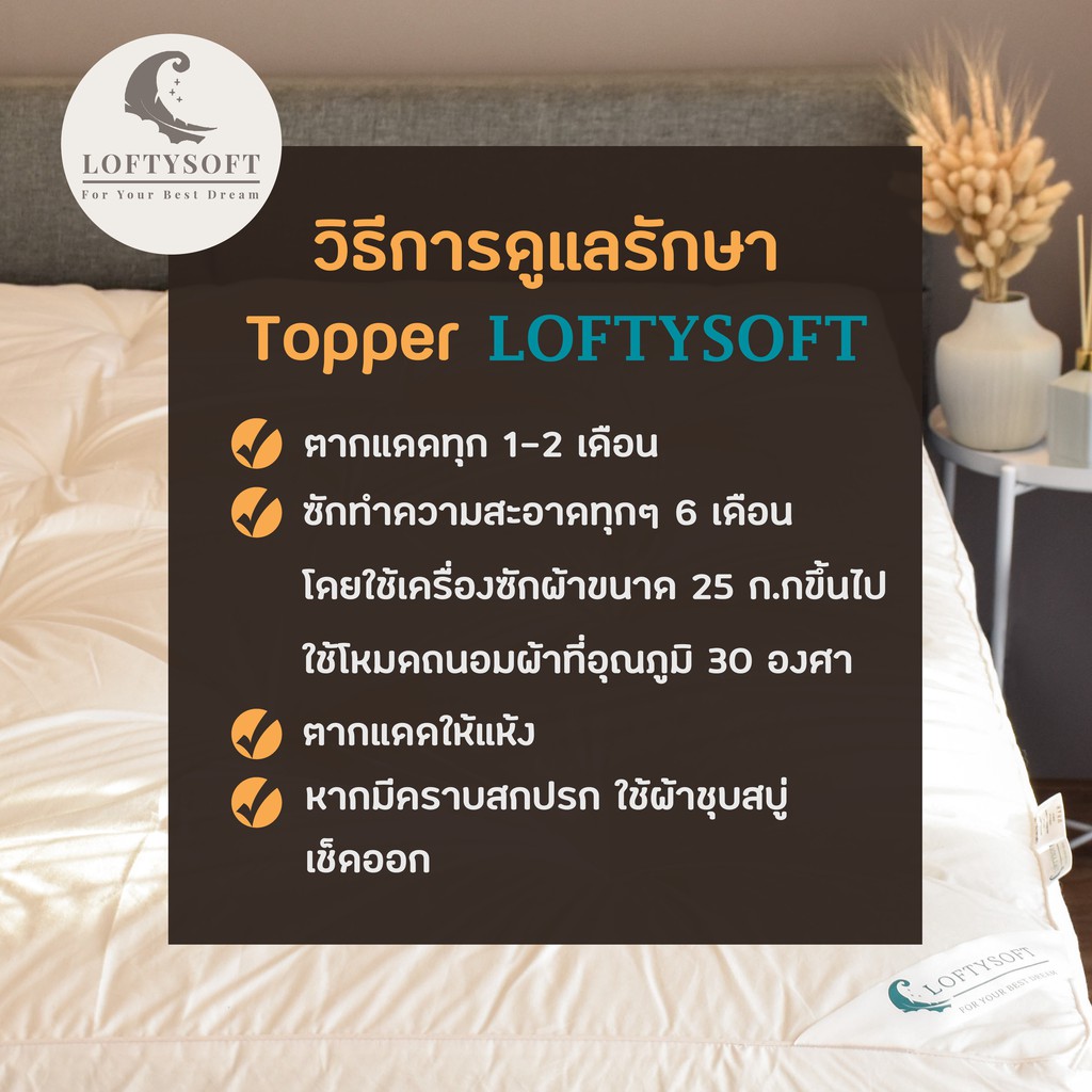 LOFTYSOFT Topper ขนห่านเทียม รุ่น Premium หนา 4 นิ้ว ผ้าคอตตอนเกรดดาวน์พรูฟกันไรฝุ่น