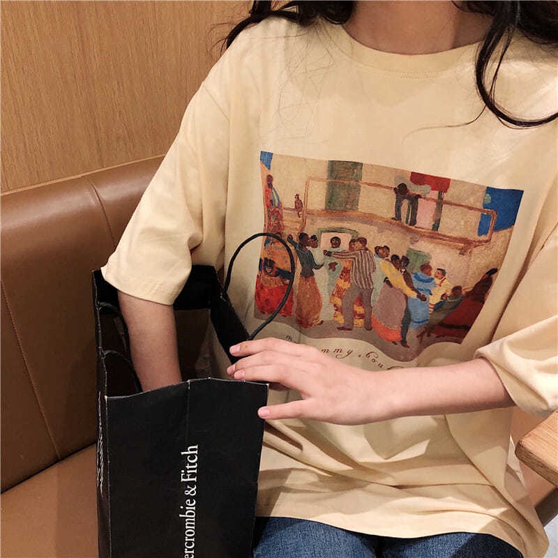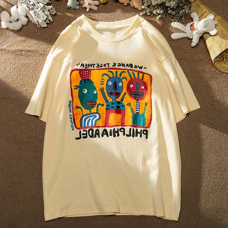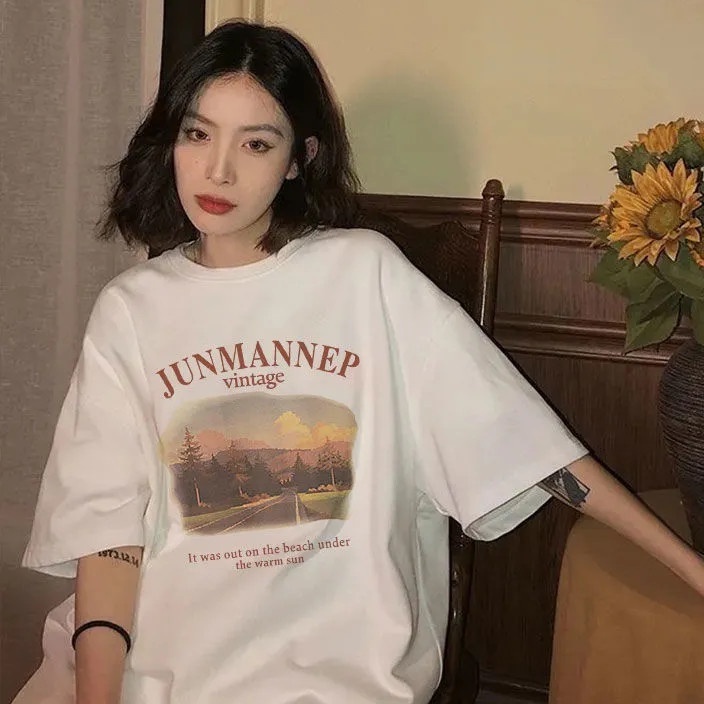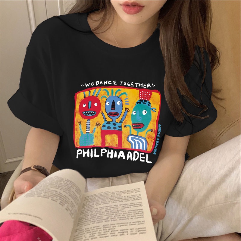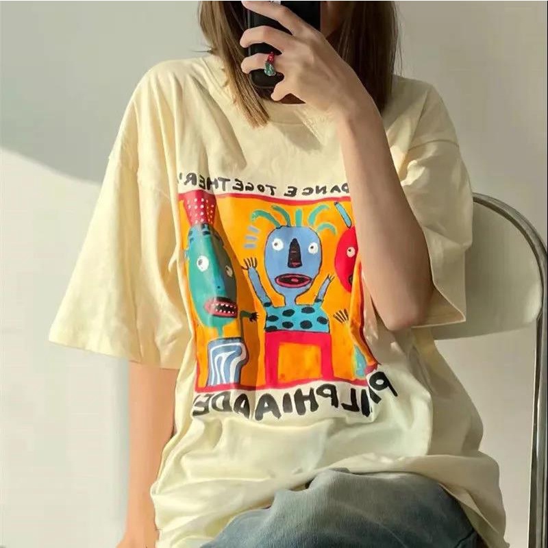 เสื้อยืดแขนสั้นทรงหลวมสไตล์เกาหลี oversize เสื้อผ้าสาวอวบน่ารัก เสื้อโอเวอร์ไซส์ผู้หญิงกําลังฮิตใหม่ล่าสุด ลายการ์ตูน