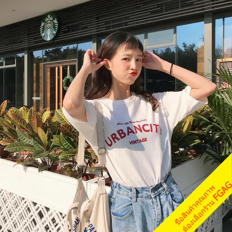 เสื้อยืดวินเทจผู้หญิง oversize เสื้อผ้าสไตล์เกาหลี เสื้อโอเวอร์ไซส์น่ารัก แขนสั้น ทรงหลวม พิมพ์ตัวอักษร