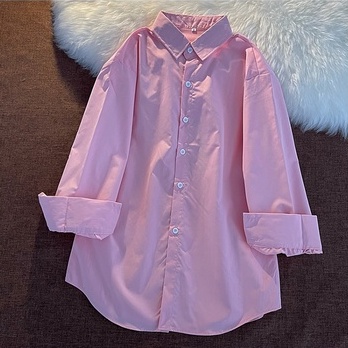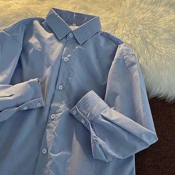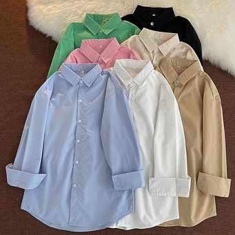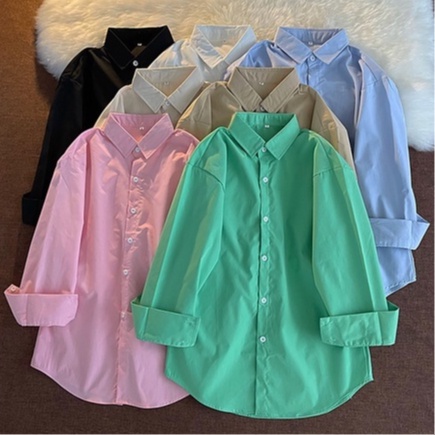 เสื้อเชิ้ตผู้หญิงแขนยาวสีขาว Oversize เสื้อผ้าแฟชั่นวัยรุ่น ทรงหลวมสไตล์เกาหลี เสื้อคู่รักชายหญิงโอเวอร์ไซส์สีพื้น M-XXL