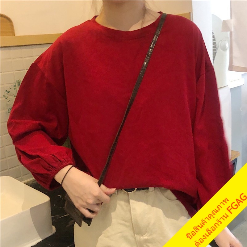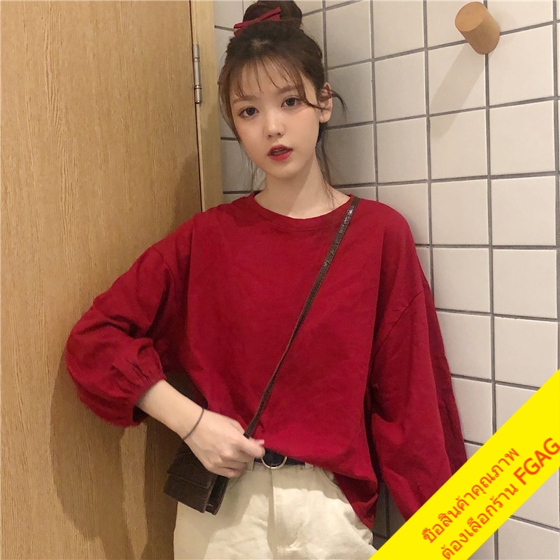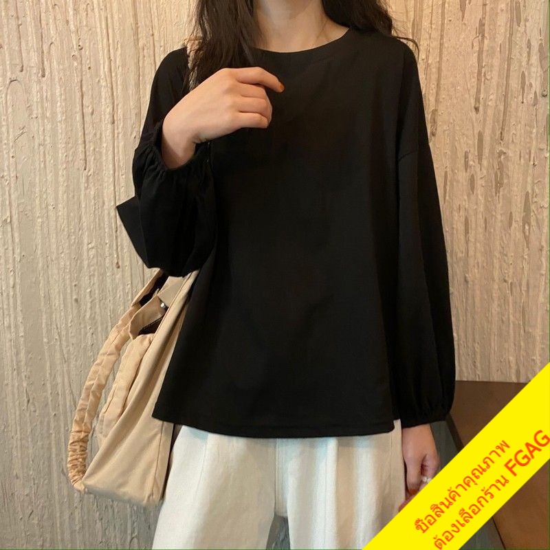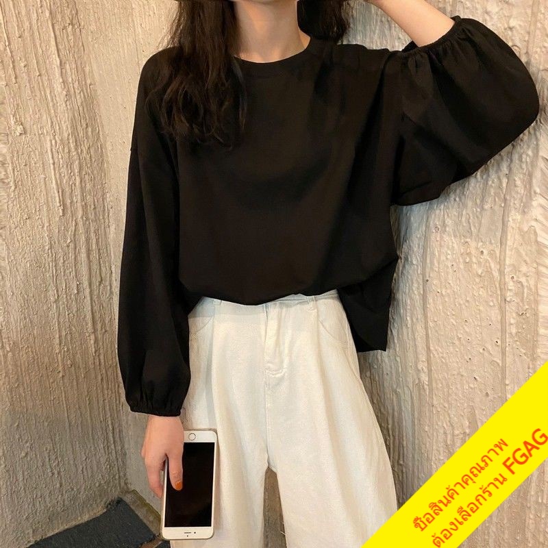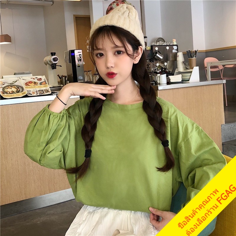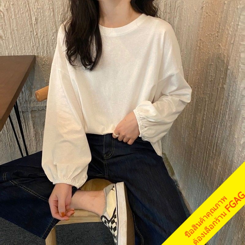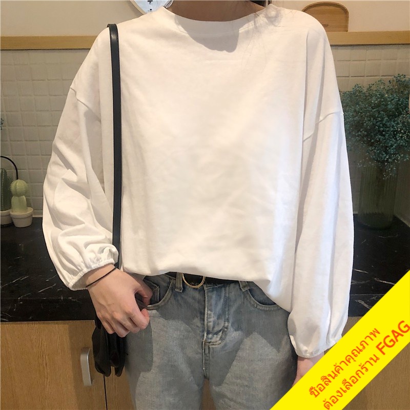 เสื้อยืดแขนยาวผู้หญิง oversize เสื้อผ้าแฟชั่นวัยรุ่น เสื้อโอเวอร์ไซส์เกาหลี แขนพอง มินิมอล สีพื้นสีขาว xxl