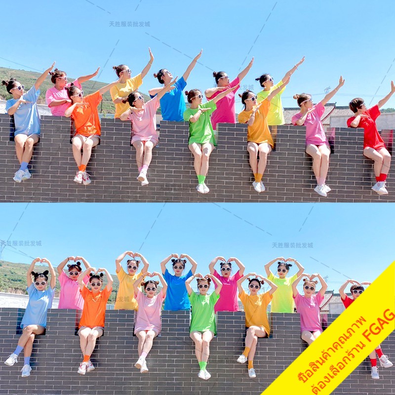 เสื้อยืดคอกลมแขนสั้นผู้ชาย Oversize เสื้อผ้าวัยรุ่นแฟชั่นผู้หญิง เสื้อคู่รักทีมเพื่อน โอเวอร์ไซส์ เกาหลี สีพื้น สีเหลือง