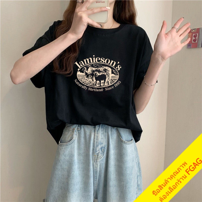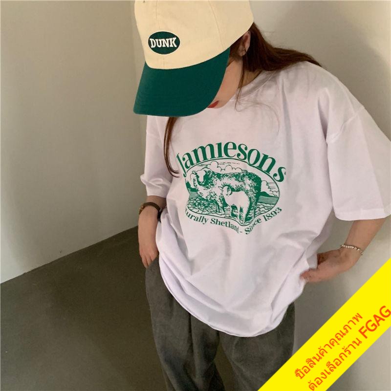 เสื้อยืดแขนสั้นทรงหลวมสไตล์เกาหลี oversize เสื้อผ้าแฟชั่นวัยรุ่นน่ารัก เสื้อโอเวอร์ไซส์ผู้หญิง คู่รัก ลายการ์ตูน